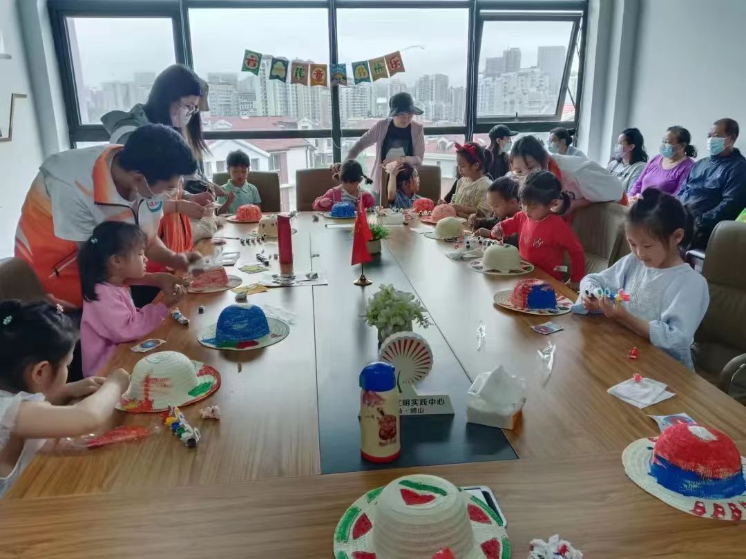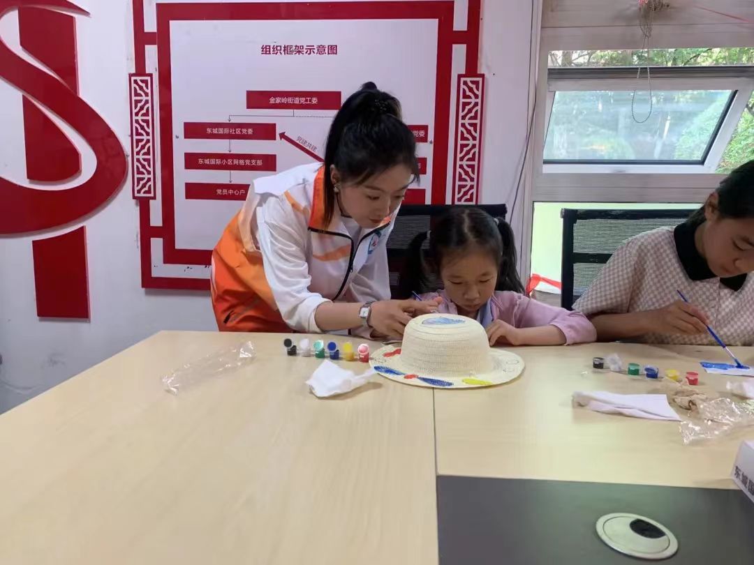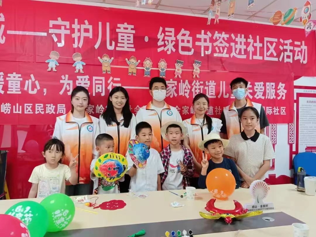 6月1日,艺术与传媒学院优秀党员和学生代表在金家岭社区党群服务中心开展“守护儿童绿色书签进社区”实践活动。