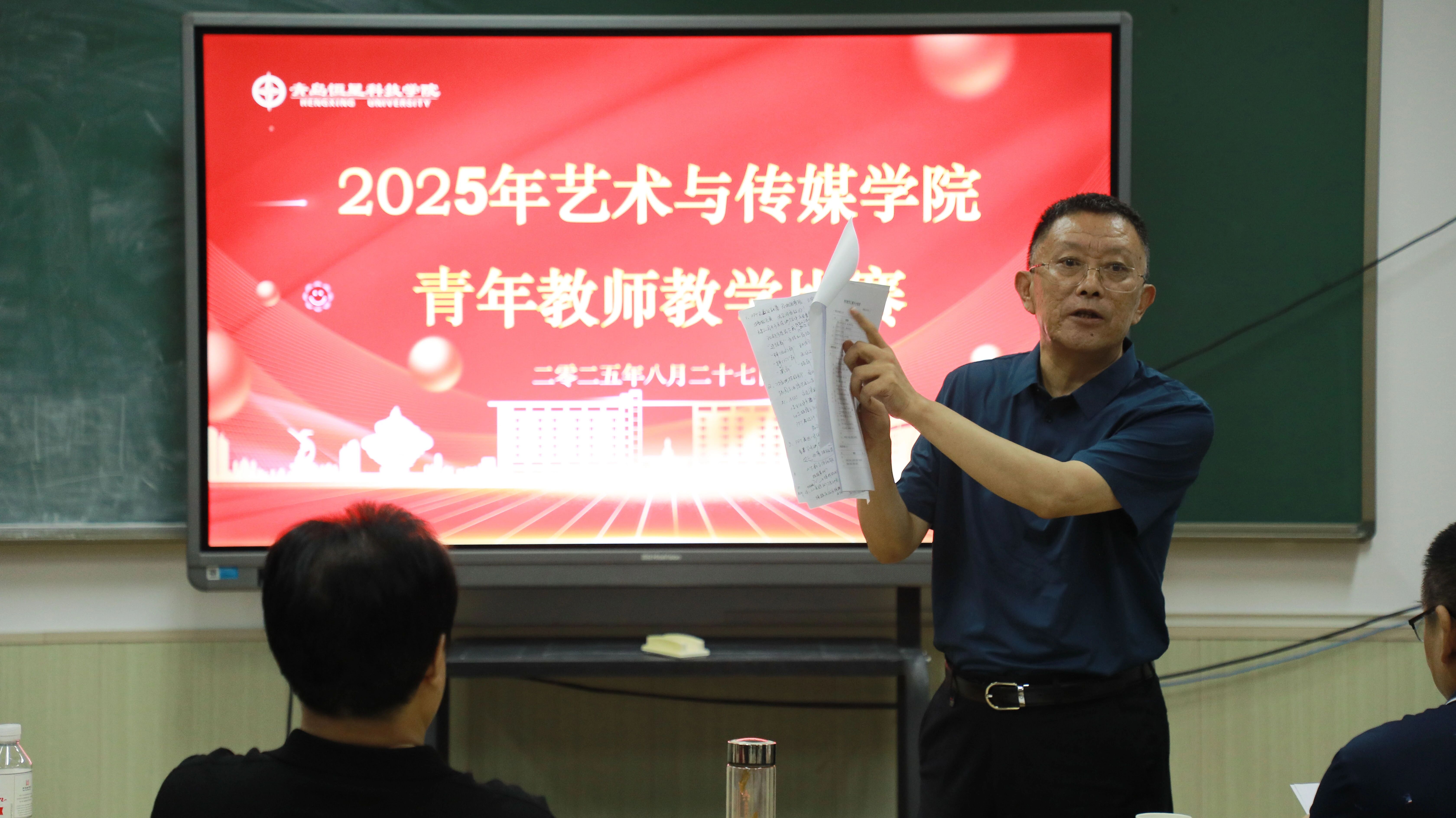 为进一步提升青年教师教学能力,激发教学创新活力,夯实立德树人根基,全面落实学校教育教学改革工作要求,8月27日,艺术与传媒学院在A3教学楼成功举办2025年青年教师教学比赛院级选拔赛。我院院长邱秉常,名誉院长曲洪启,专业带头人台法教授、楼正国教授、张成义教授,以及教学院长王鲁漫、科研院长梁延芳组成评审团队,现场对参赛教师进行评审。