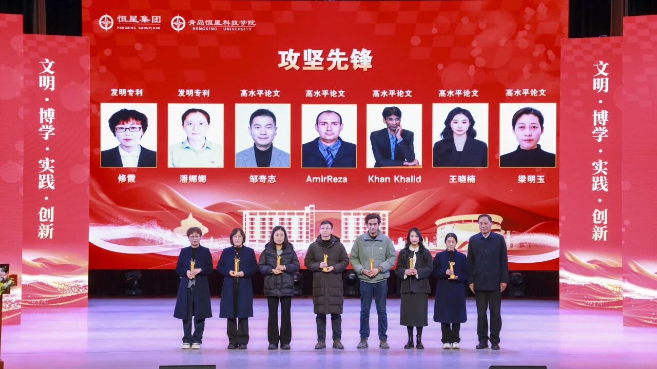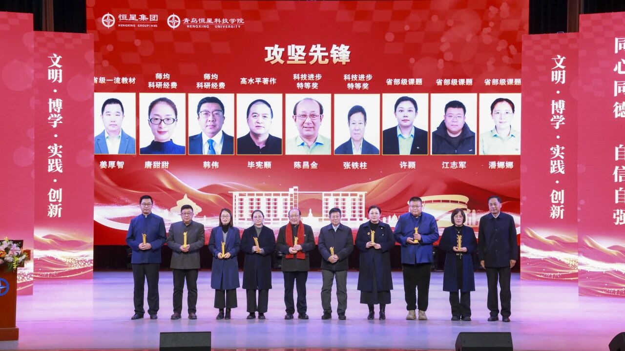 2025年12月30日下午,恒星控股集团青岛恒星科技学院“申硕领航·使命必达——2026年度目标责任书签订暨申硕攻坚表彰大会”在国际交流中心隆重举行。在此次总结与展望的关键会议上,我院在科研创新、成果转化及人才引进等多方面取得的卓越成绩获得学校高度认可,多位教师荣获“攻坚先锋”荣誉称号,展现了学院强大的综合实力与昂扬的奋进姿态。