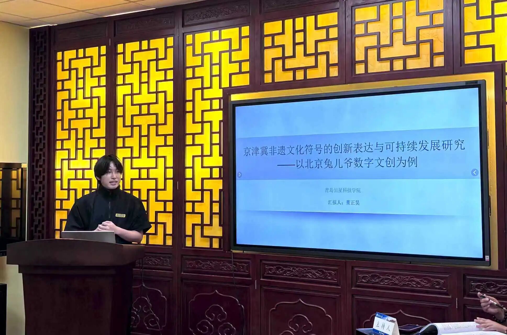 2025年9月20日,“2025年天津大学京津冀区域非遗可持续性发展学术论坛”在天津大学成功举行。我院院办主任董正昊老师应邀参加,并就其主持课题《京津冀非遗文化符号的创新表达与可持续发展研究——以北京兔儿爷数字文创为例》作学术报告。