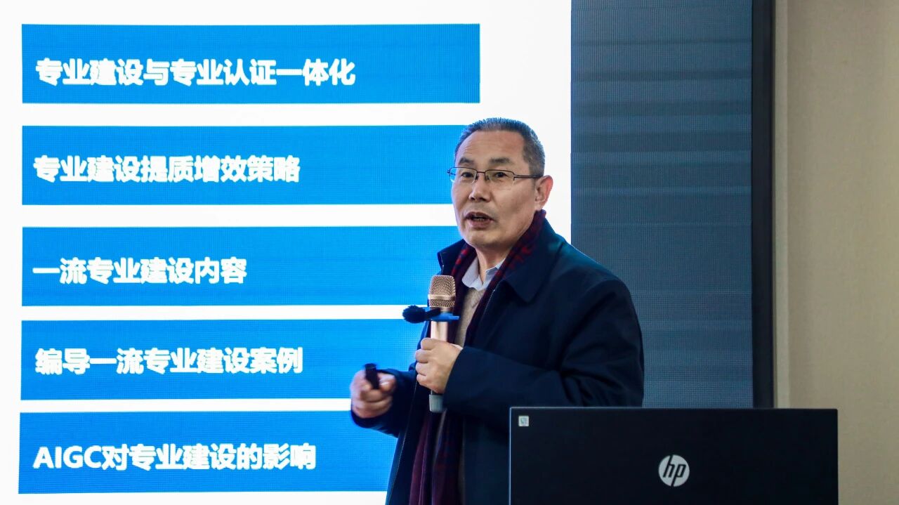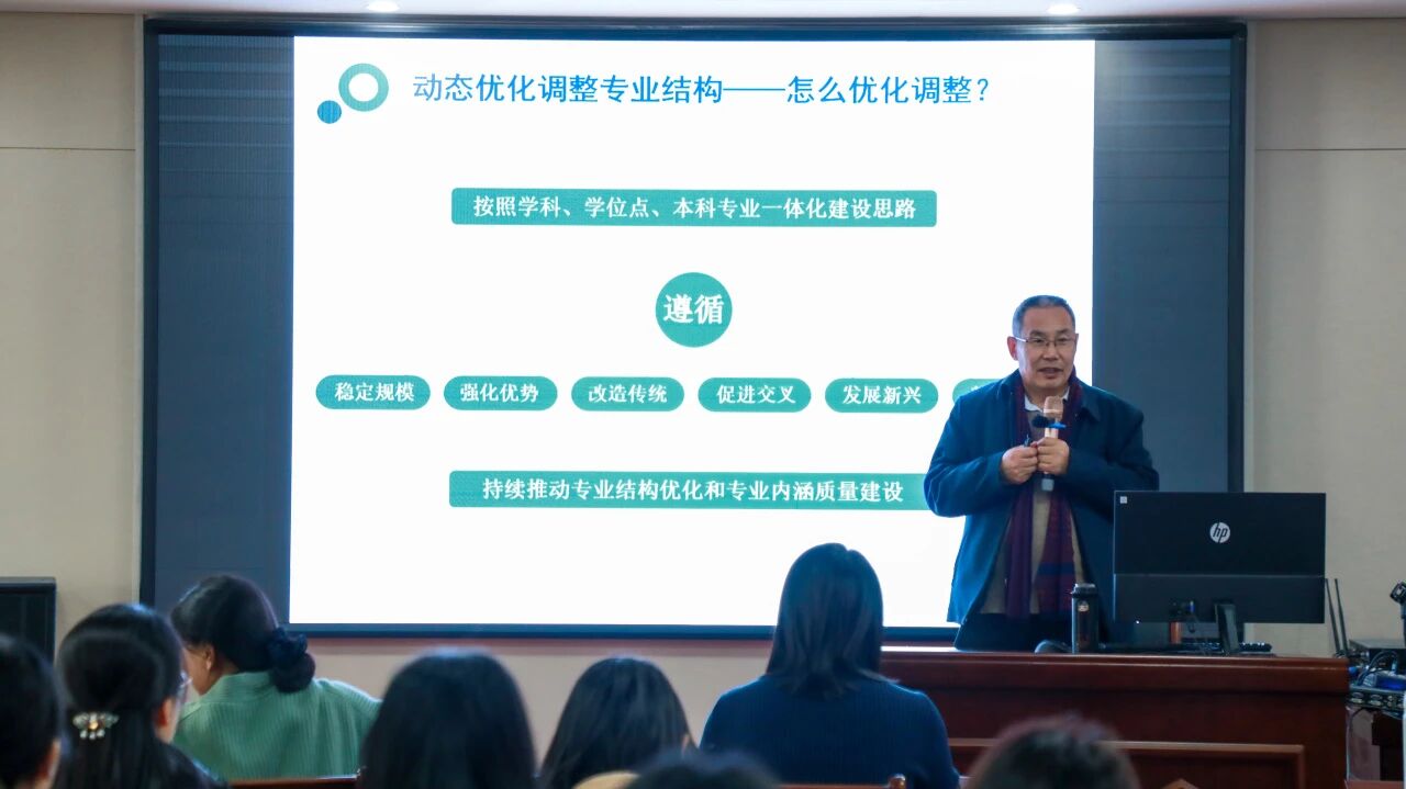 讲座伊始,马池珠教授结合自身教育改革与专业建设的丰富经验,深入剖析了当下本科教育改革的趋势,专业建设必须打破学科壁垒,融合人文、技术与责任意识等。马教授以山东师范大学的教改实践为范例,系统分享了一流专业建设的核心内容与提质增效的具体策略,其经验具有重要的借鉴价值。