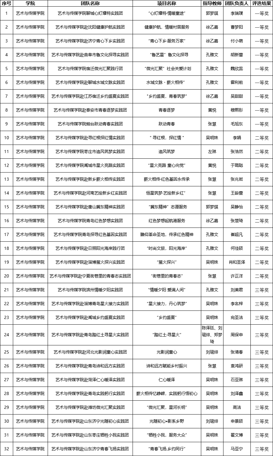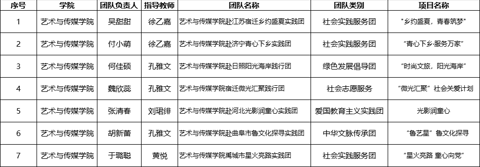 艺术与传媒学院暑期三下乡优秀团队公示如下: