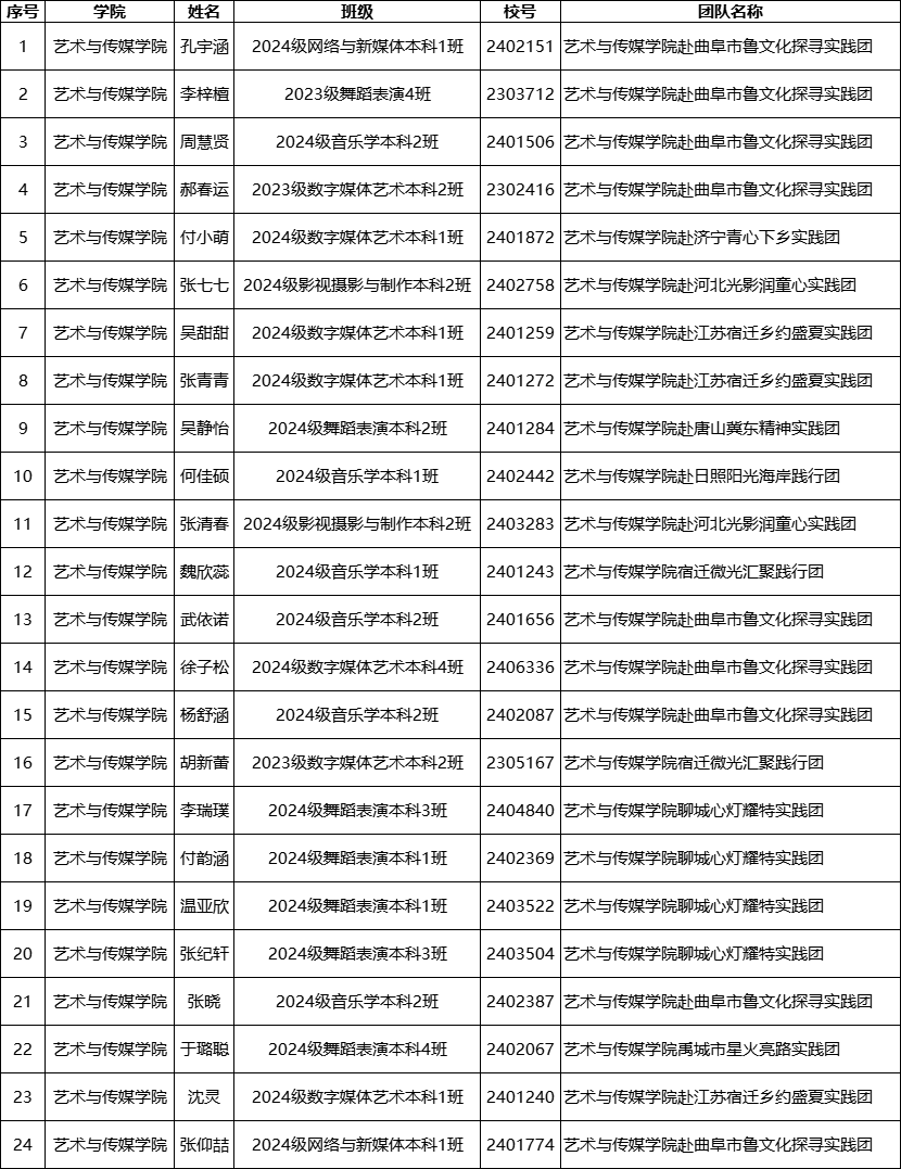 艺术与传媒学院暑期三下乡优秀个人公示如下: