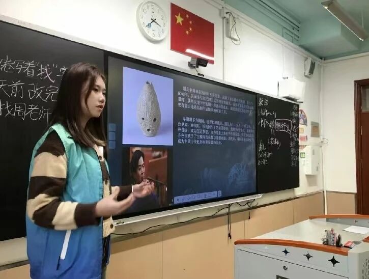 乐器篇章同样精彩纷呈。志愿者们重点介绍了多款中国古乐器的历史渊源与艺术特色。8000岁的“骨笛仙”贾湖骨笛,作为世界上最早的可吹奏乐器,其七声音阶的完备让同学们惊叹不已;起源于新石器时代的埙,低沉悠远的音色承载着先民的生活智慧;古琴作为文人修身养性的挚友,“窈窕淑女,琴瑟友之”的诗句让同学们领略到其深厚的文化内涵;编钟以庞大的规模和精湛的工艺,展现了古代礼乐制度的辉煌;还有音色清亮的古筝、兼具独奏与伴奏功能的杨琴,都让同学们深深着迷。现场播放的竹笛演奏视频,悠扬的旋律更是让同学们沉浸其中,纷纷表示“第一次感受到古乐器这么好听”。