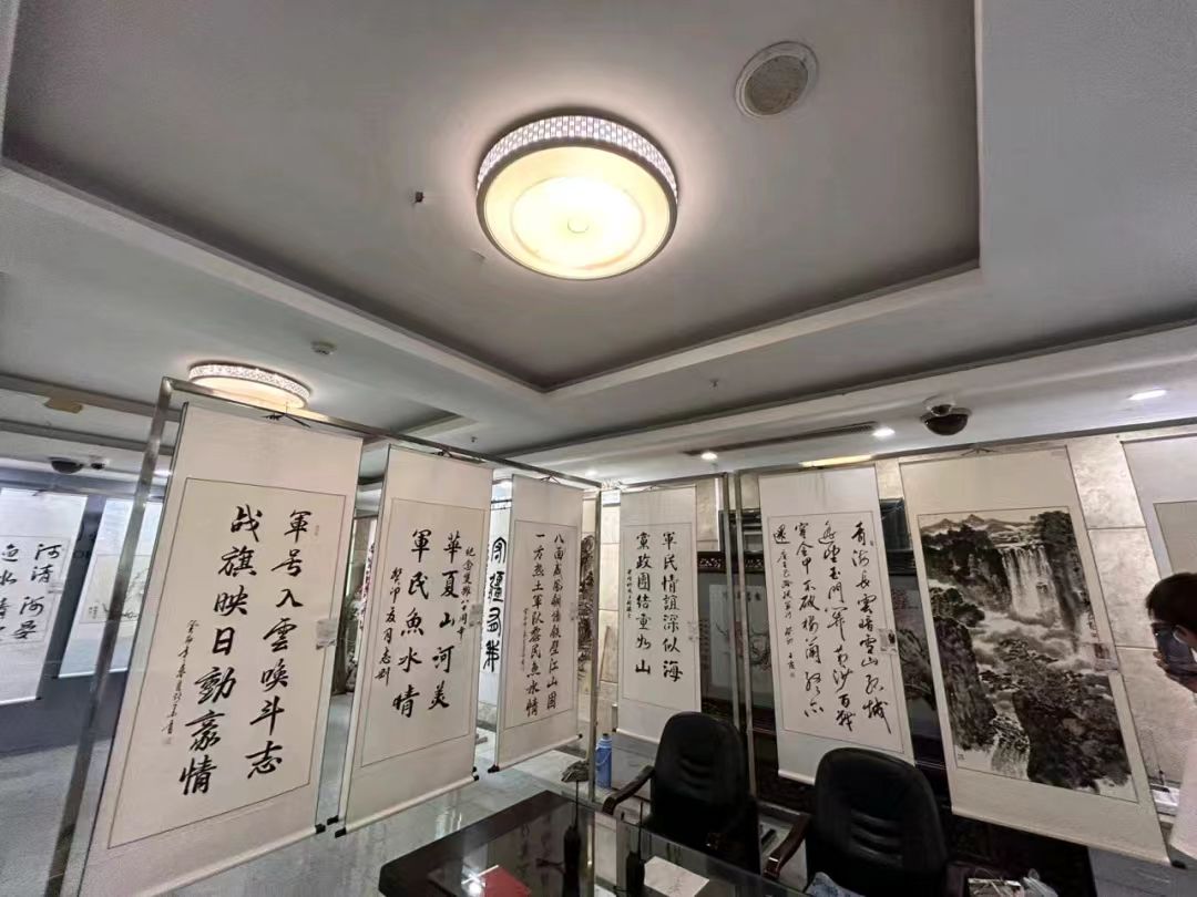 图为山东佳居物业管理有限公司在中国银行大厦举办的退伍军人画展。
