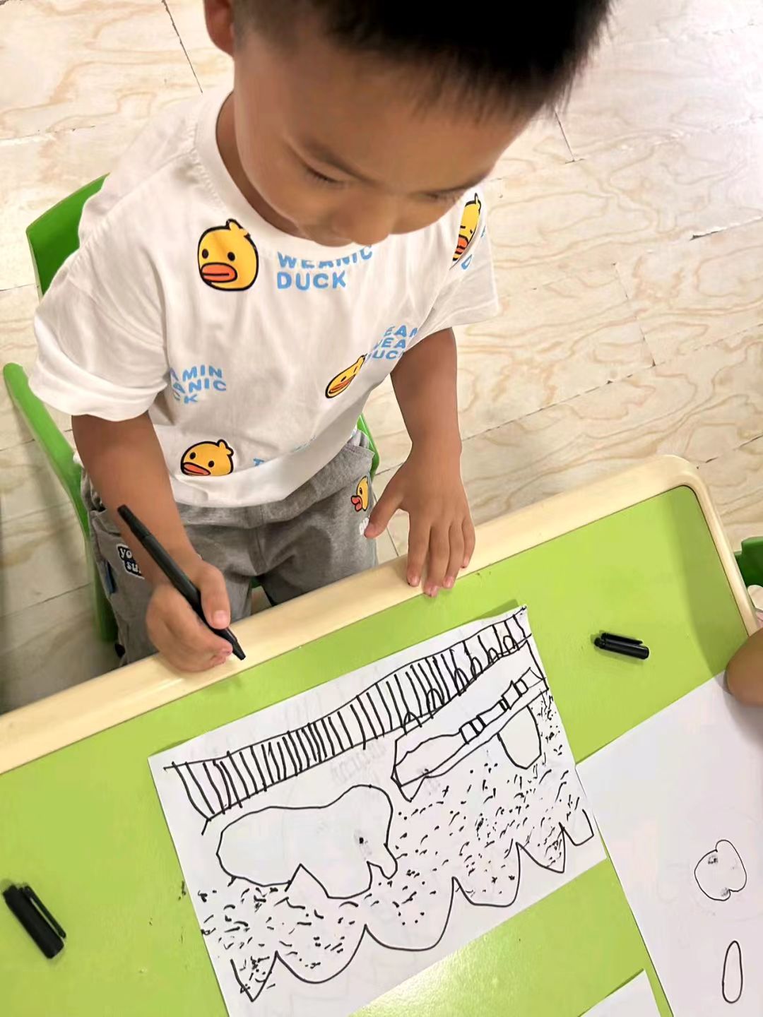 图为社区幼儿园的小朋友在恒星学子讲授后的作品。