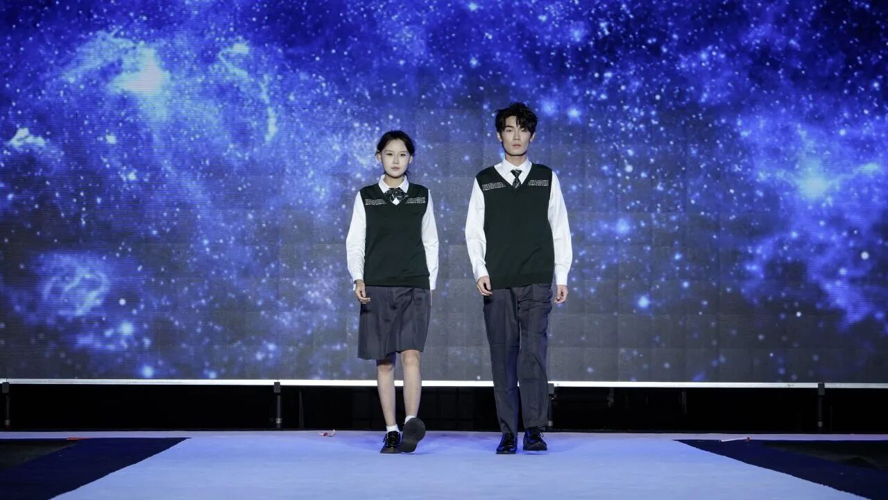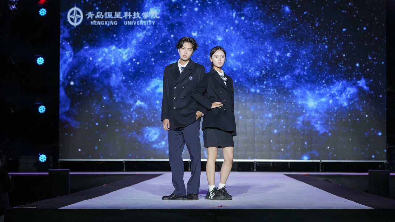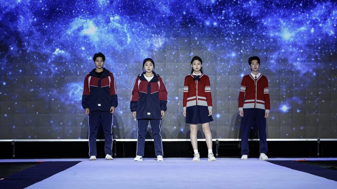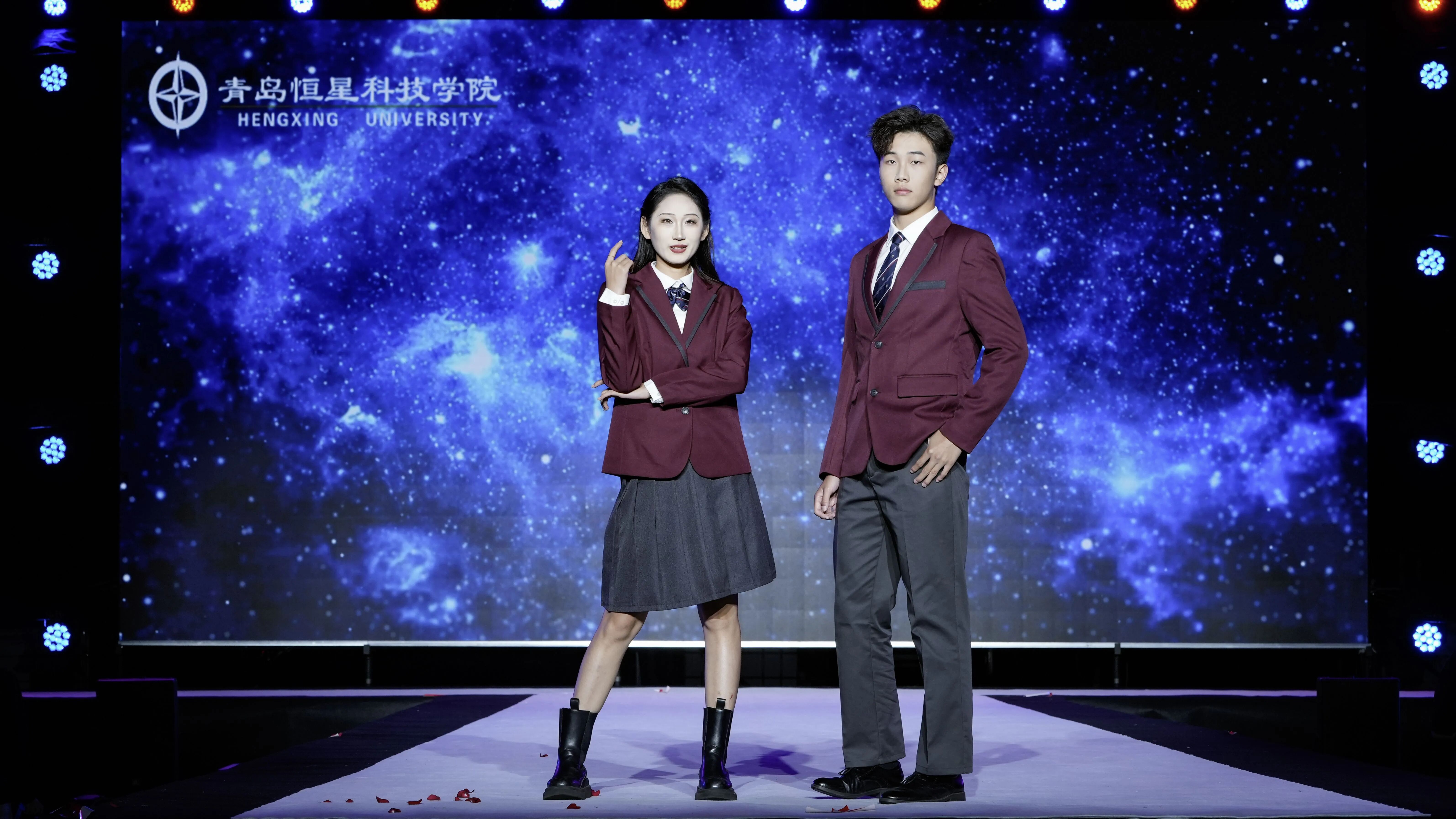 第一组校服作品由青岛恒星台法服装专家工作室,联合江苏苏美达伊顿纪德品牌管理有限公司、上海跃佳服饰有限公司等共同推出。