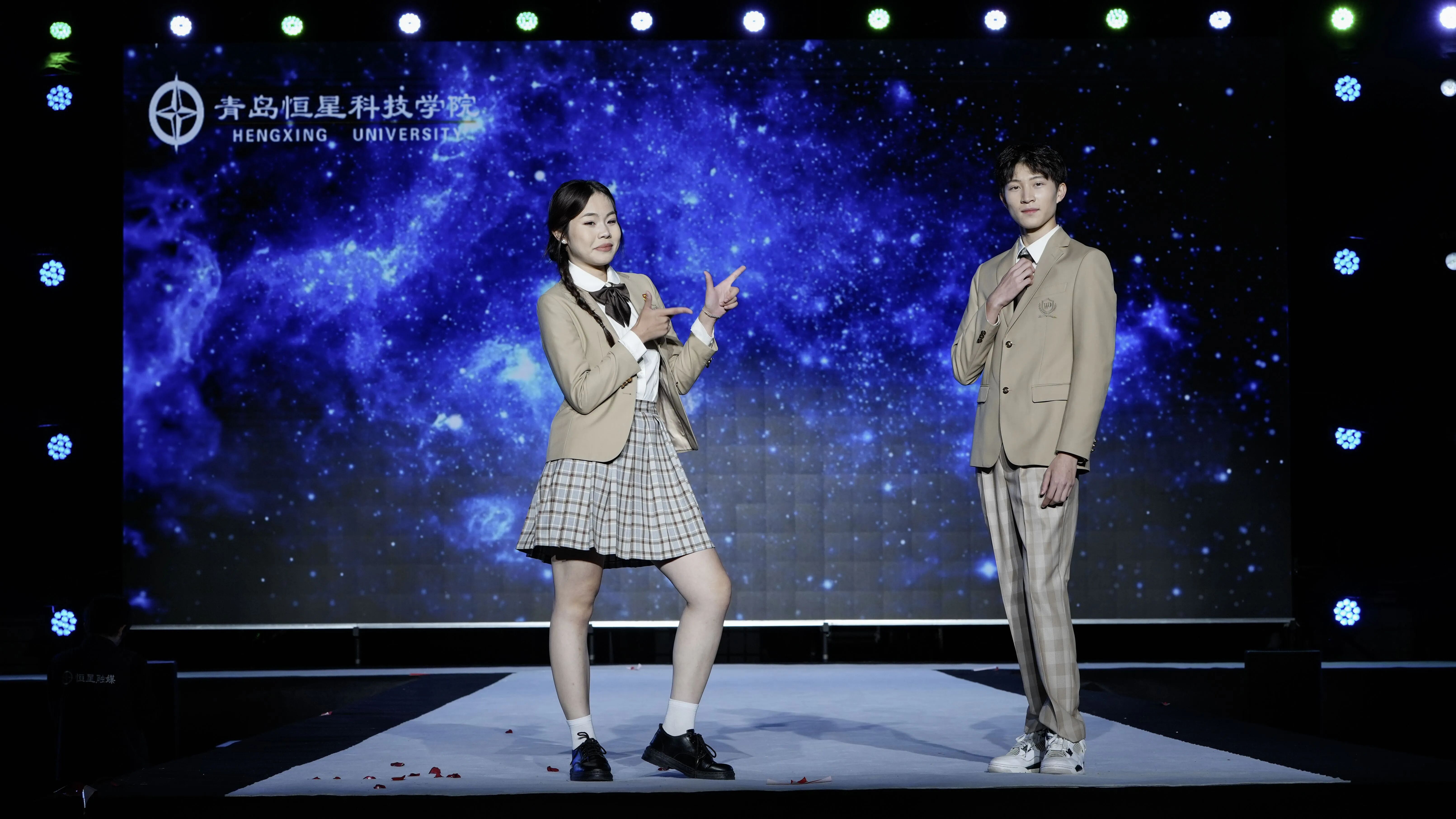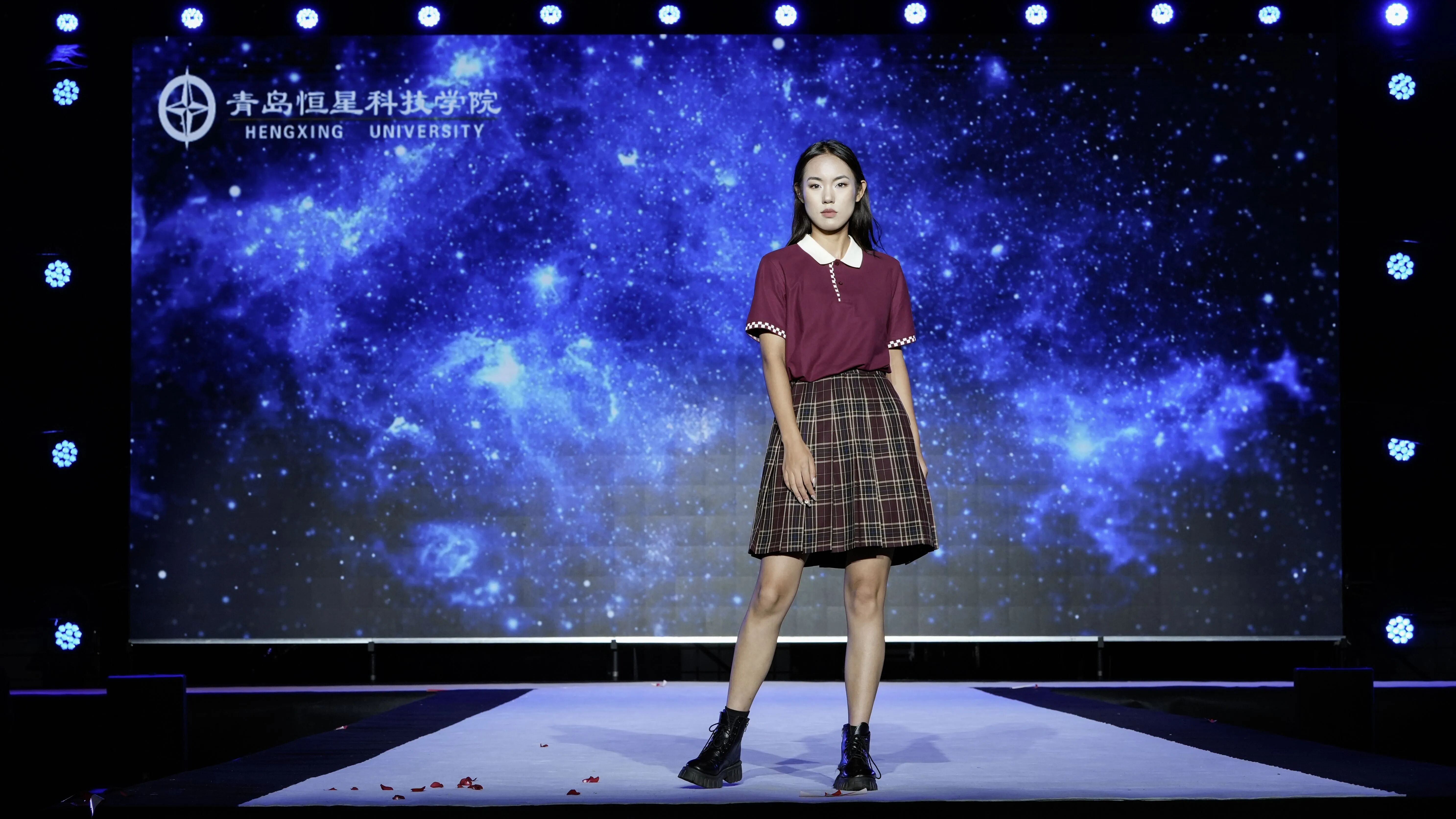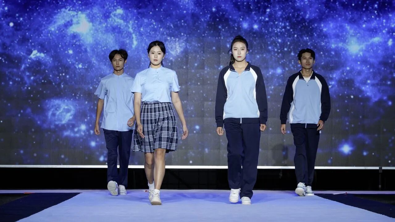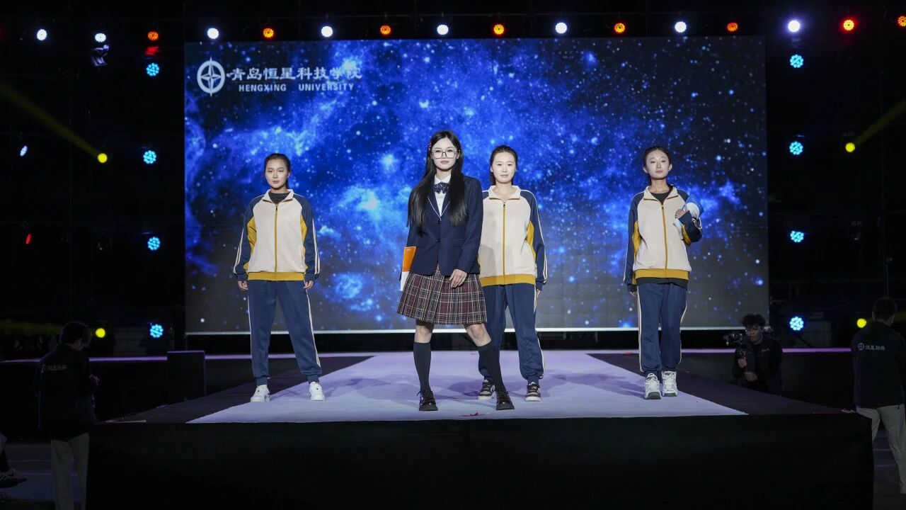 第一组校服作品由青岛恒星台法服装专家工作室,联合江苏苏美达伊顿纪德品牌管理有限公司、上海跃佳服饰有限公司等共同推出。
