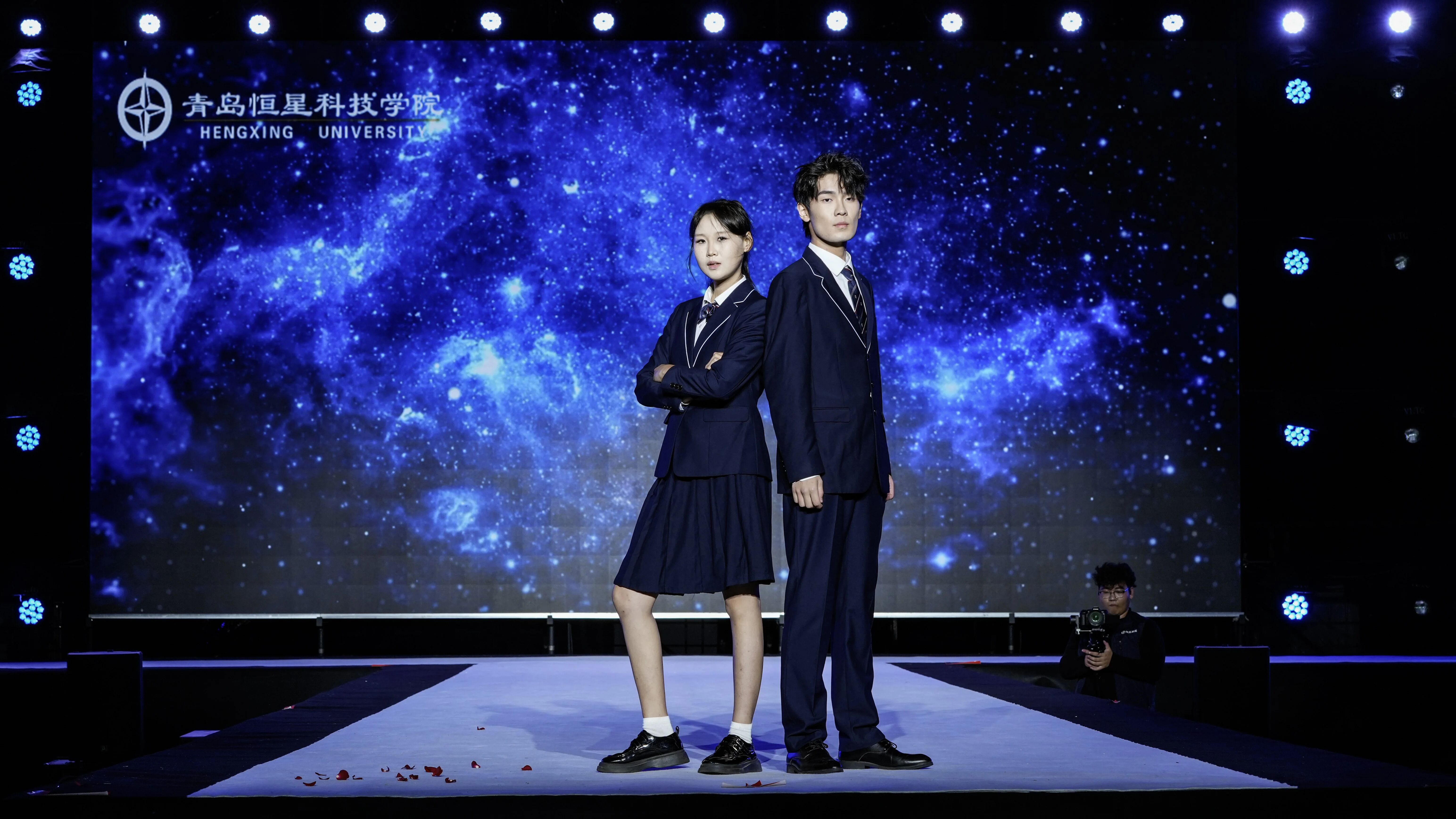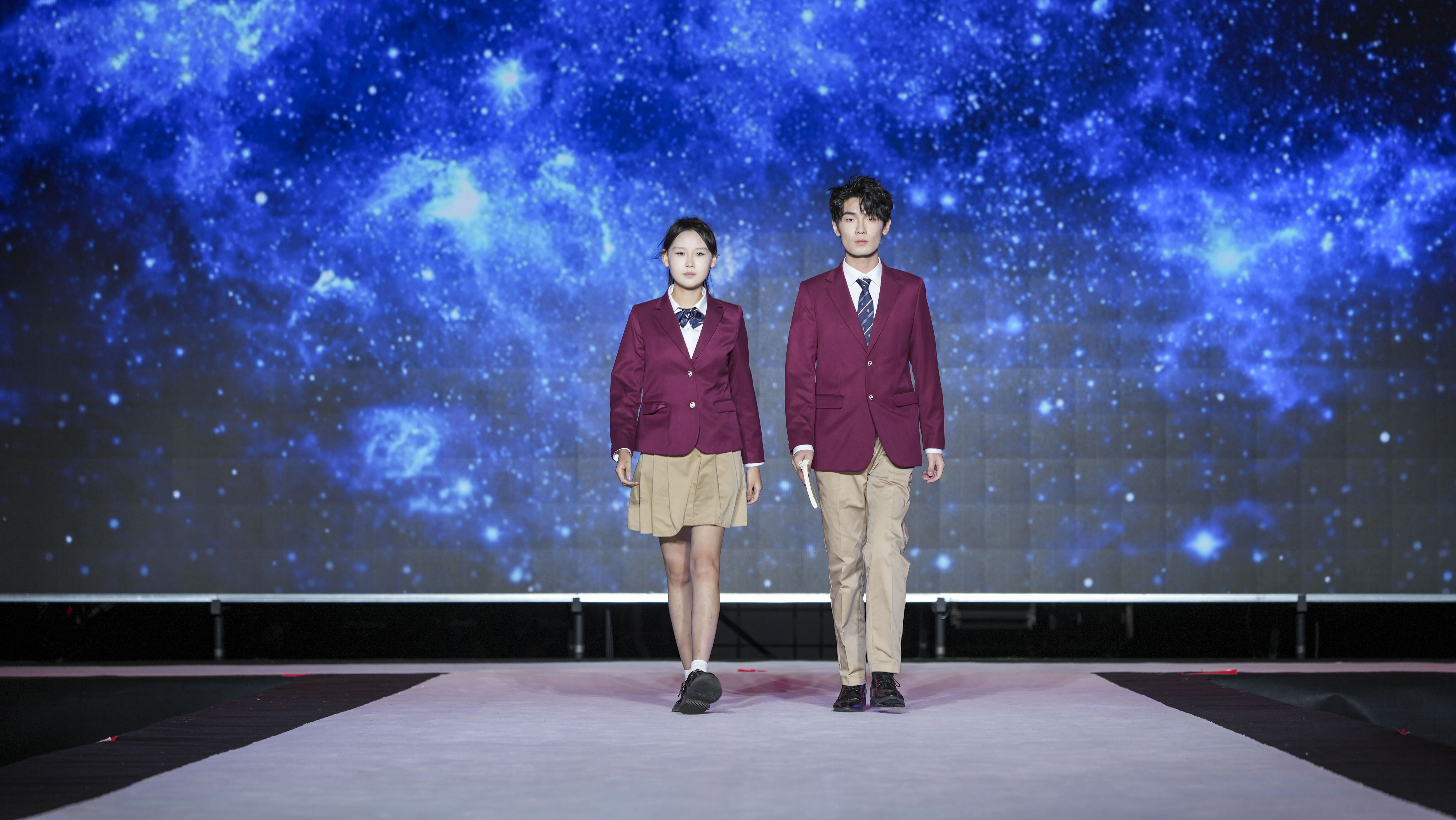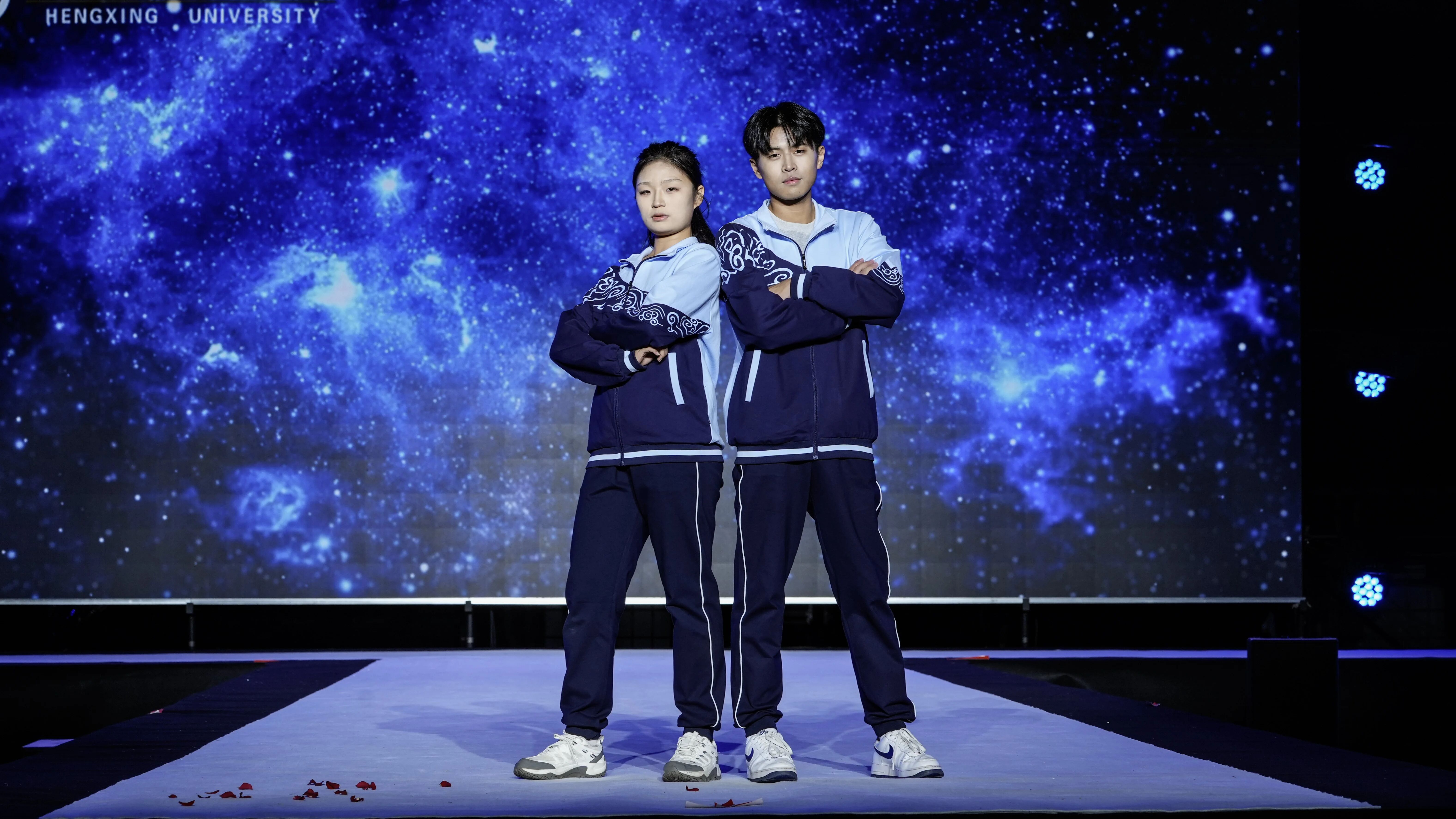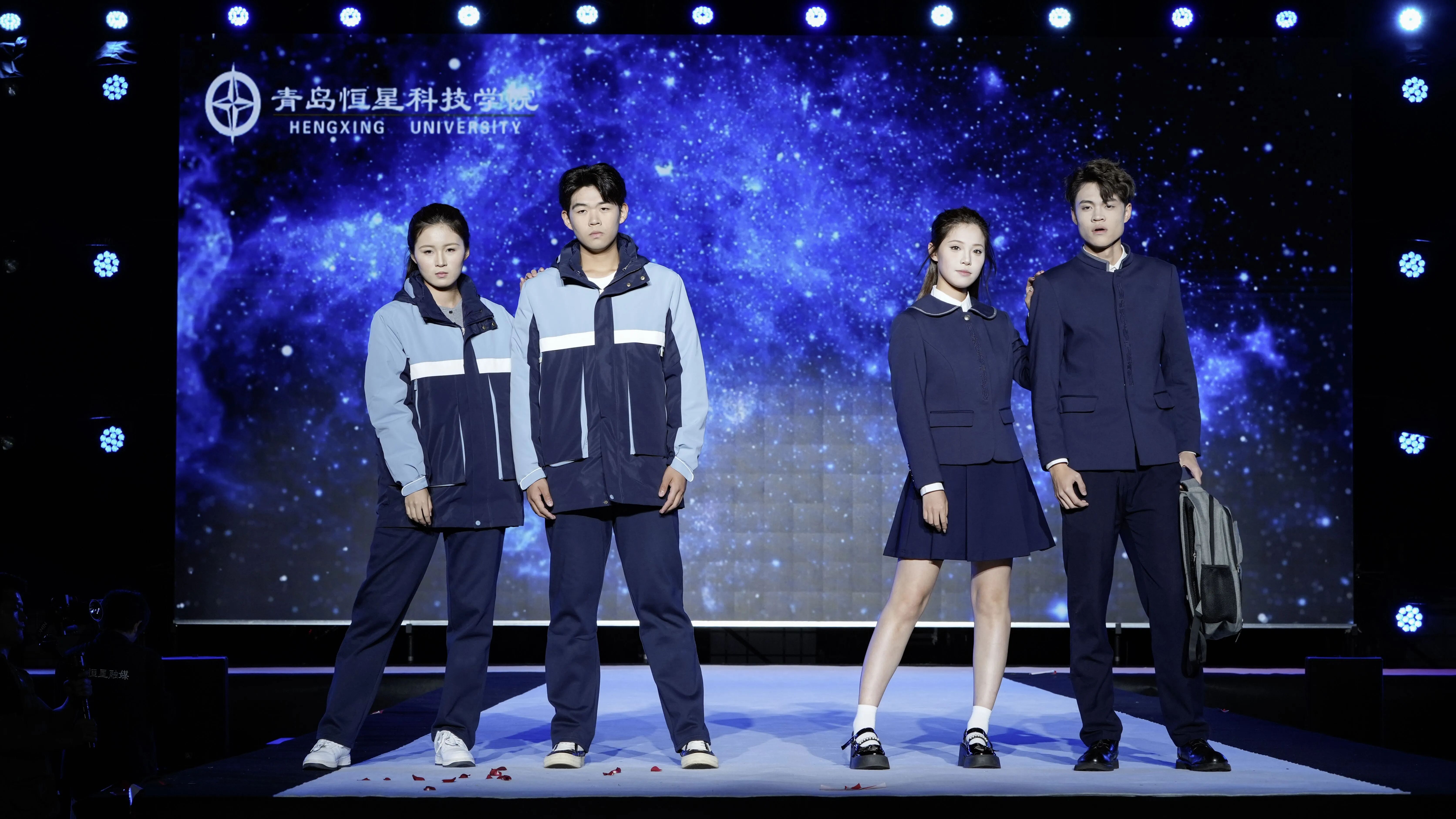 第一组校服作品由青岛恒星台法服装专家工作室,联合江苏苏美达伊顿纪德品牌管理有限公司、上海跃佳服饰有限公司等共同推出。