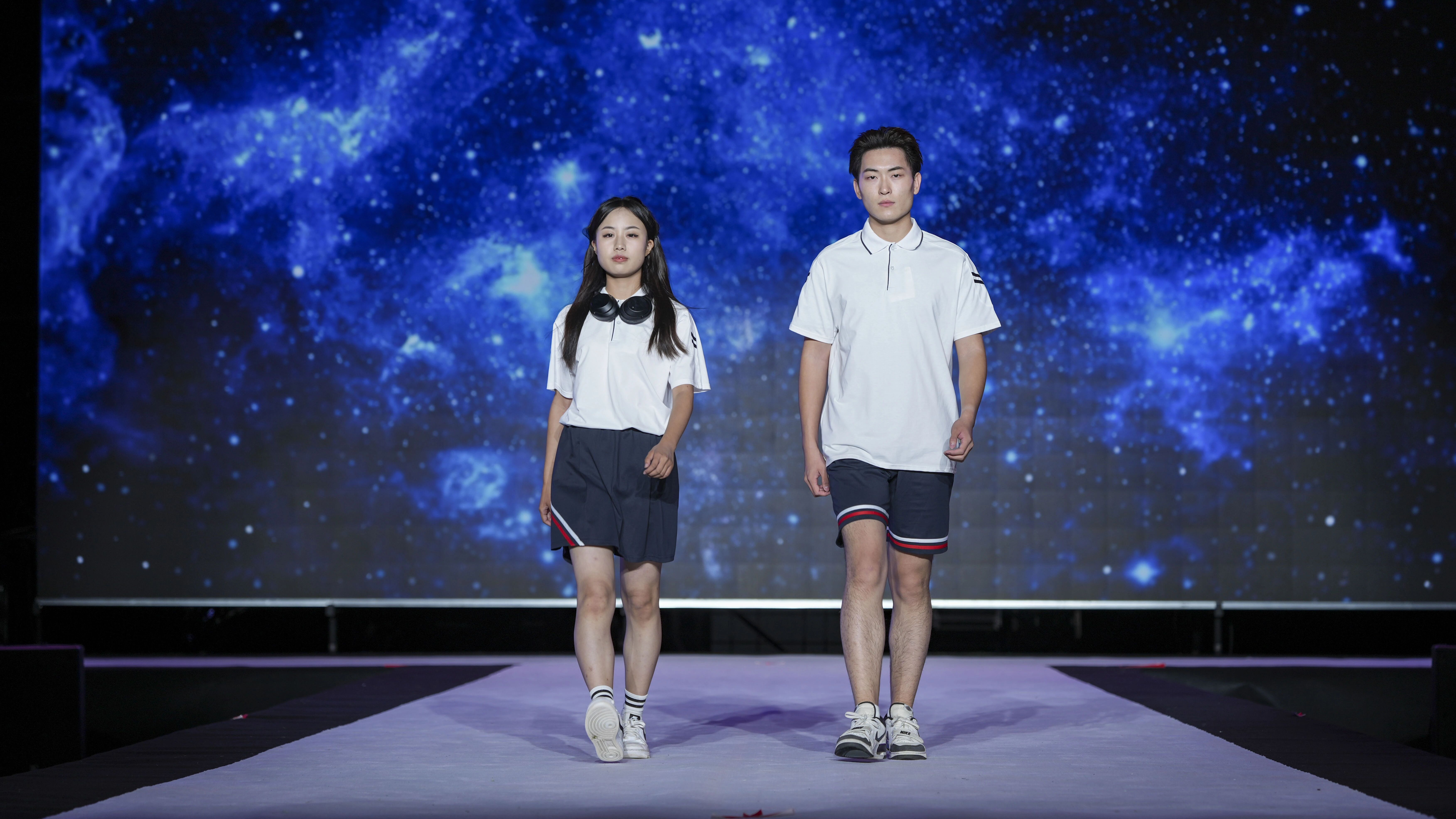 活动现场,包括我院学子在内的70人模特队依次亮相,他们步履坚定,气度不凡,分别演绎了三大主题校服系列,活力满满,朝气蓬勃。