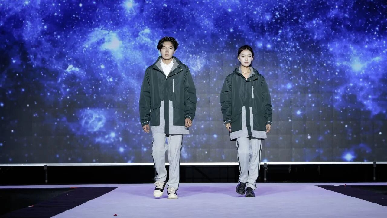 第二组作品由青岛恒星杨楠服装优师工作室,携手浙江经典童话服饰有限公司、青岛威达体育用品有限公司等共同呈现。通过明快的线条与活力的设计,透射出君子方正有为、朝气蓬勃的进取精神。
