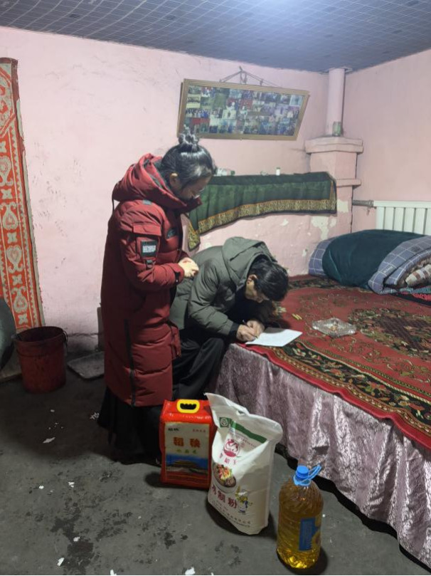 在此次实践中,张子矜始终以饱满的热情、务实的作风投身其中,主动融入基层、贴近群众,切实把责任扛在肩上、把服务落在实处。在民族团结实践里,张子矜协助社区筹备民族文化联谊活动,参与 “双语政策宣讲”,与不同民族的居民共话家常、共绘愿景,深刻体会到 “铸牢中华民族共同体意识” 不是一句口号,而是邻里间守望相助的一份真情、朝夕相伴的一份温暖、同心同向的一份坚守。在走访慰问中,张子矜为贫困孩子和残疾人送去公益温暖大礼包和米面油与新春祝福,记录群众的急难愁盼,协助社区落实帮扶举措,真切感受到基层作为服务群众 “最后一公里” 的责任与担当。