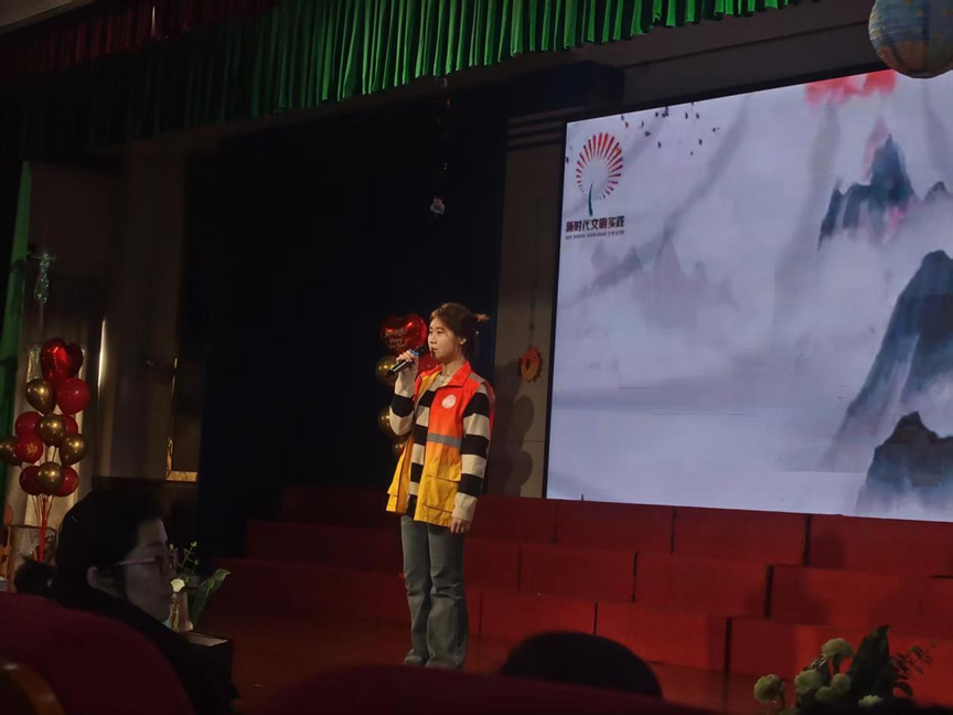 当童声的古韵未散,青岛恒星科技学院的志愿者万浩然同学以一曲《江南》为我们推开江南水乡的水墨画卷,婉转的歌声里是莲叶田田的诗意景致,更是“鱼水情深”的深情共鸣。将江南水乡的清婉意境娓娓道来,让婉转的旋律化作纽带,一头系着悠悠古韵,一头连着校社共建的温情,将校园的青春力量为社区美育注入活力,社区童真童趣也让校园实践扎根土壤。