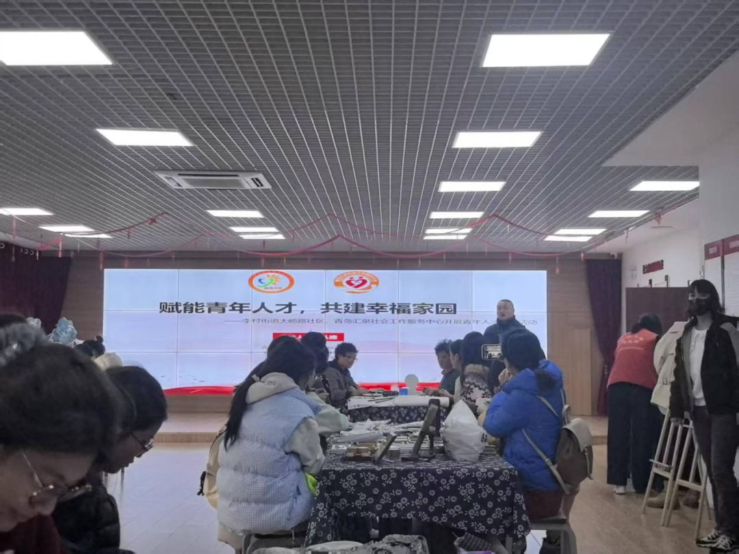 2025年11月20日,青岛恒星科技学院艺术与传媒学院青年志愿者团队走进山东省青岛市李沧区大崂路社区便民服务站,为深入推进“百万大学生进社区”实践行动,搭建非遗文化传承与青年成长实践的桥梁,开展以“赋能青年人才,共建幸福家园”为主题的社会实践活动。志愿者们在非遗观摩中感受传统文化魅力,在专家讲座中启迪人生智慧,在动手实践中锤炼过硬本领,度过了一段兼具文化厚度与实践温度的难忘时光。