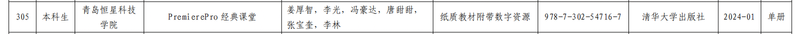 近日,山东省教材委员会办公室公布第三批山东省普通高等教育一流教材评选结果,由我院姜厚智老师主编、清华大学出版社出版的《Premiere Pro经典课堂》成功入选。这不仅是对姜老师个人教学与科研能力的肯定,也是我院在教材建设与课程改革领域取得的又一重要成果。