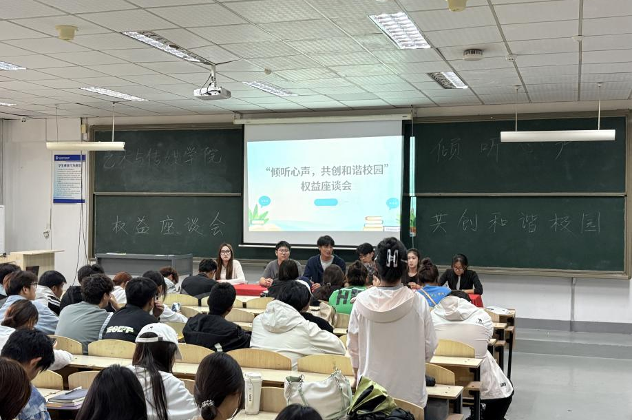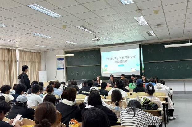 本次维护学生权益座谈会于2025年9月19日在A3-308举行,参与人员涵盖了学院各班级学生代表、院学生会权益部相关负责人等,旨在深入了解学生在学习、生活等各方面权益保障情况,共同探讨解决方案,进一步优化校园环境,切实维护好学生权益。