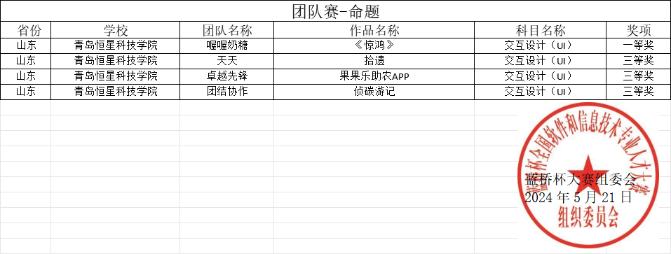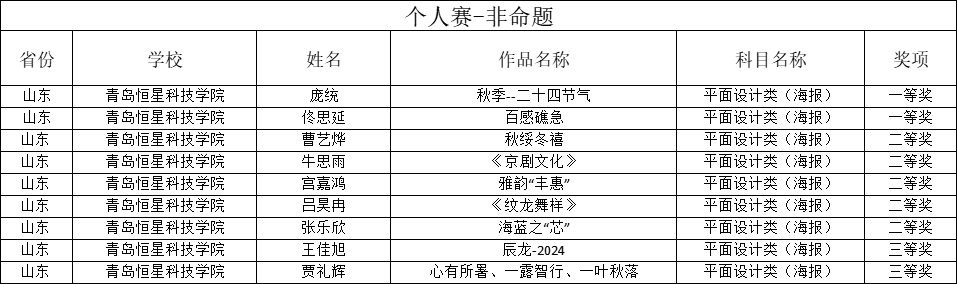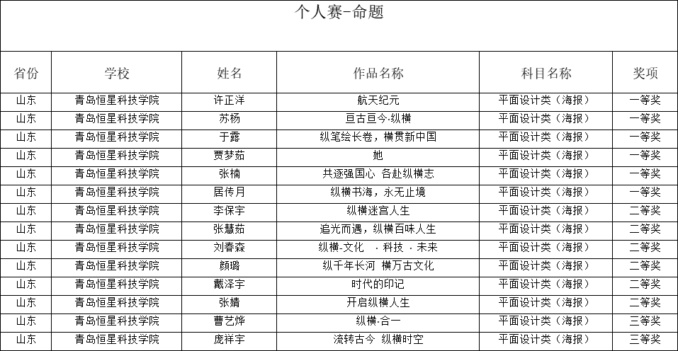 视觉艺术设计赛,作为蓝桥杯大赛的子赛项,吸引了山东省内包括山东大学、山东艺术学院、山东师范大学、青岛大学等在内的众多高校同台竞技。在激烈竞争中,我院“星星”学子突出重围,获得省级一二三等奖累计55项的好成绩。其中,一等奖10项、二等奖26项、三等奖19项。获一等奖的10项作品已被山东赛区组委会推荐晋级全国决赛。