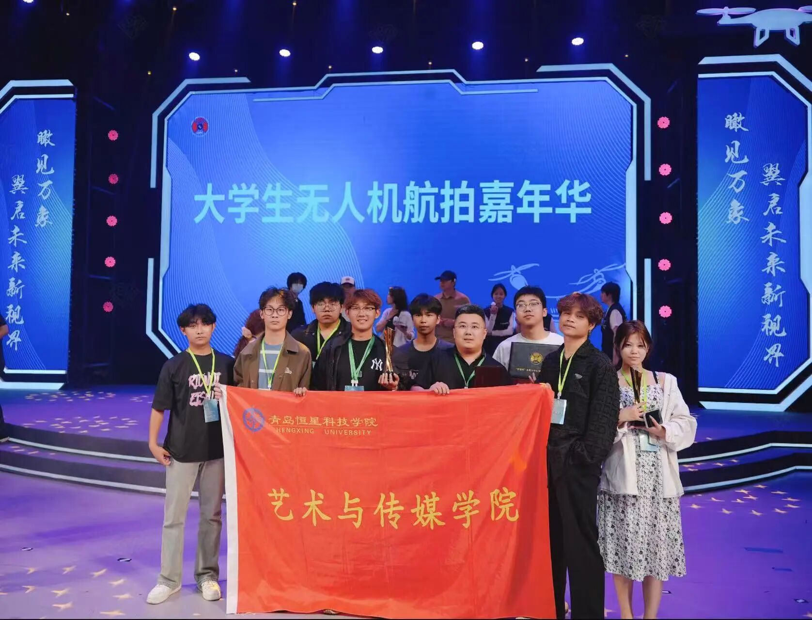 无人机航拍是近年来热门的摄影方式,它以不同视⻆展现景观独特的魅力,已成为影视创作、文旅宣传等领域不可或缺的创作手段。在此背景下,我院学子在“科德杯”全国大学生无人机航拍竞赛中斩获佳绩,这不仅是对师生专业能力的认可,更彰显出我院人才培养的卓越成效。