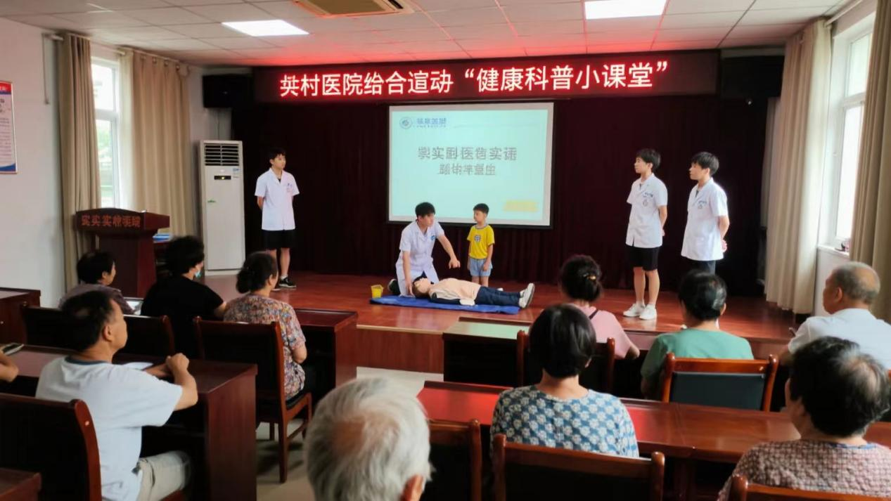 “大家看,当有人晕倒时,我们首先要判断环境是否安全,然后拍打他的肩膀大声呼喊……”7月8日下午,沈阳市和平区文体中心内座无虚席,实践团正在这里开展“健康科普小课堂”活动。2021级播音与主持艺术专业学生孙艺菲化身“科普主播”,用清晰的语言、标准的动作演示心肺复苏流程,台下居民认真观看,不时拿出手机录像。