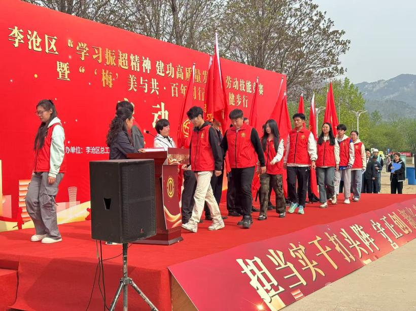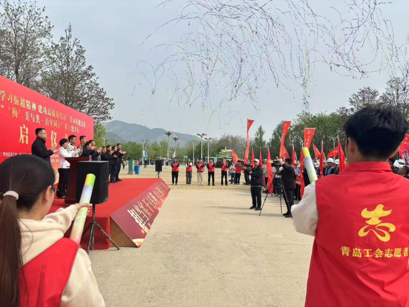 4月19日上午,青岛世界园艺博览园内热闹非凡,李沧区“学习振超精神 建功高质量发展”劳动技能竞赛启动仪式暨“‘梅’美与共•百年同行”职工健步行活动在这里活力开启,来自全区各工会单位的一千余名职工相聚,共同开启这场春日的精彩之旅。