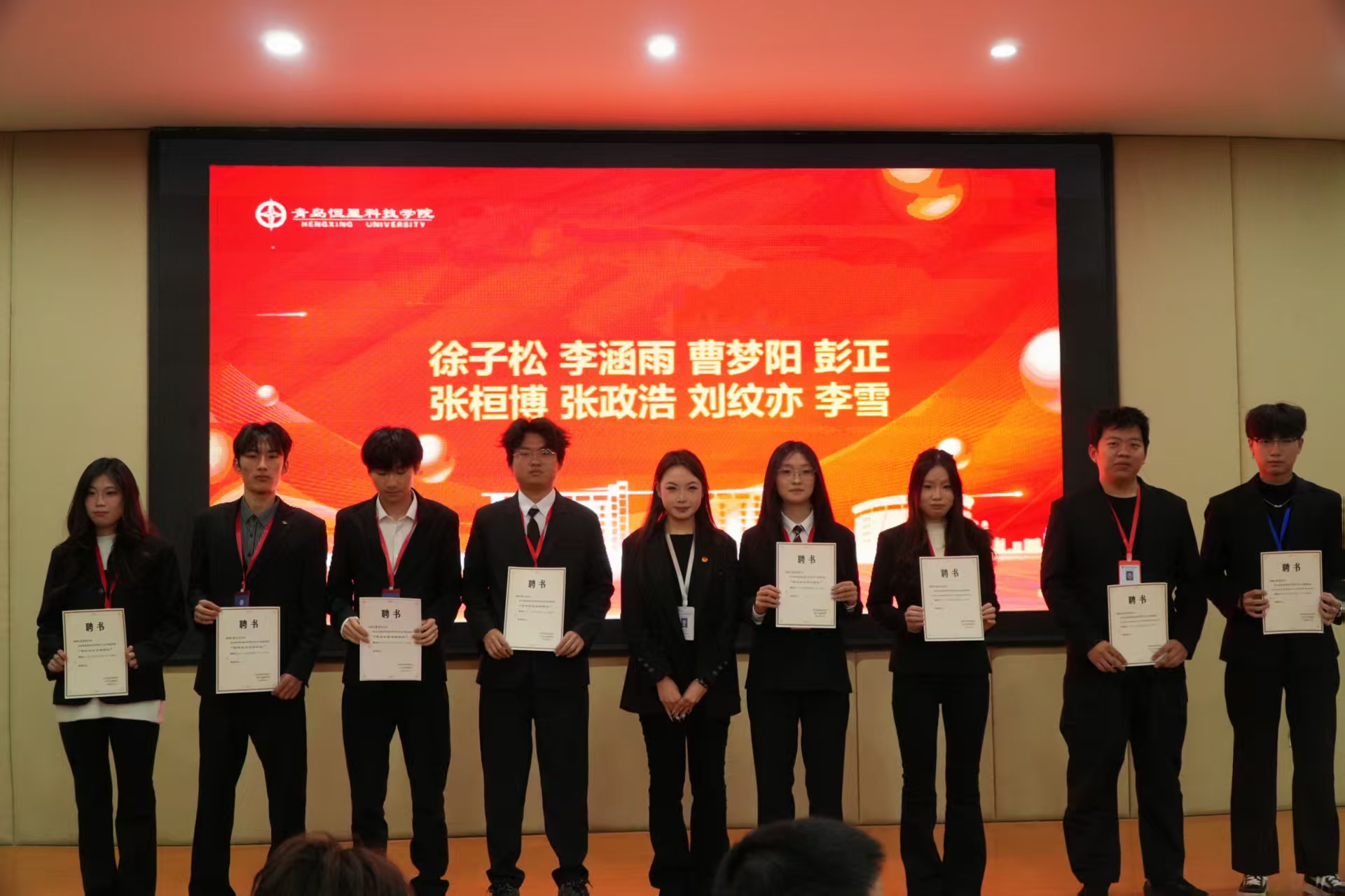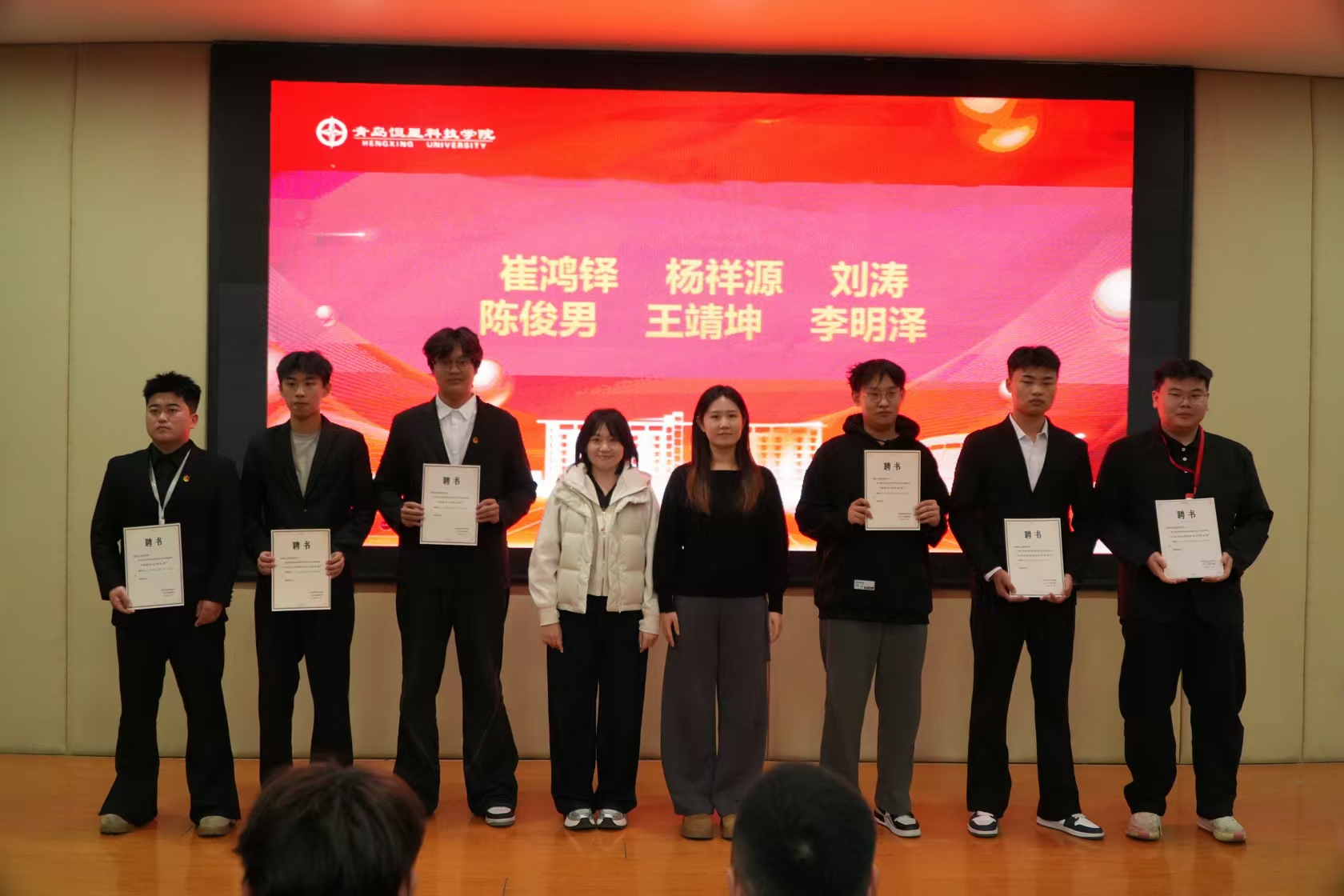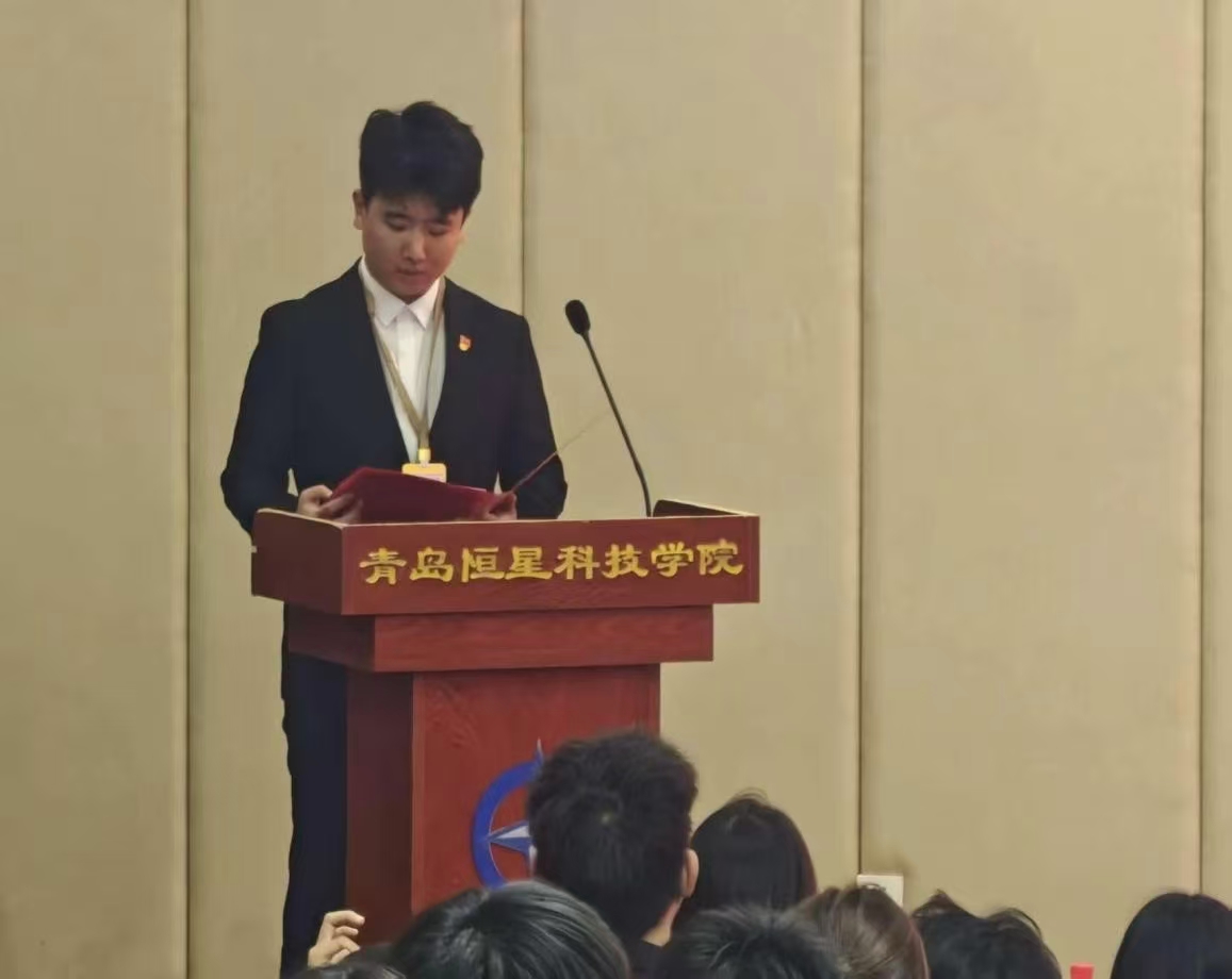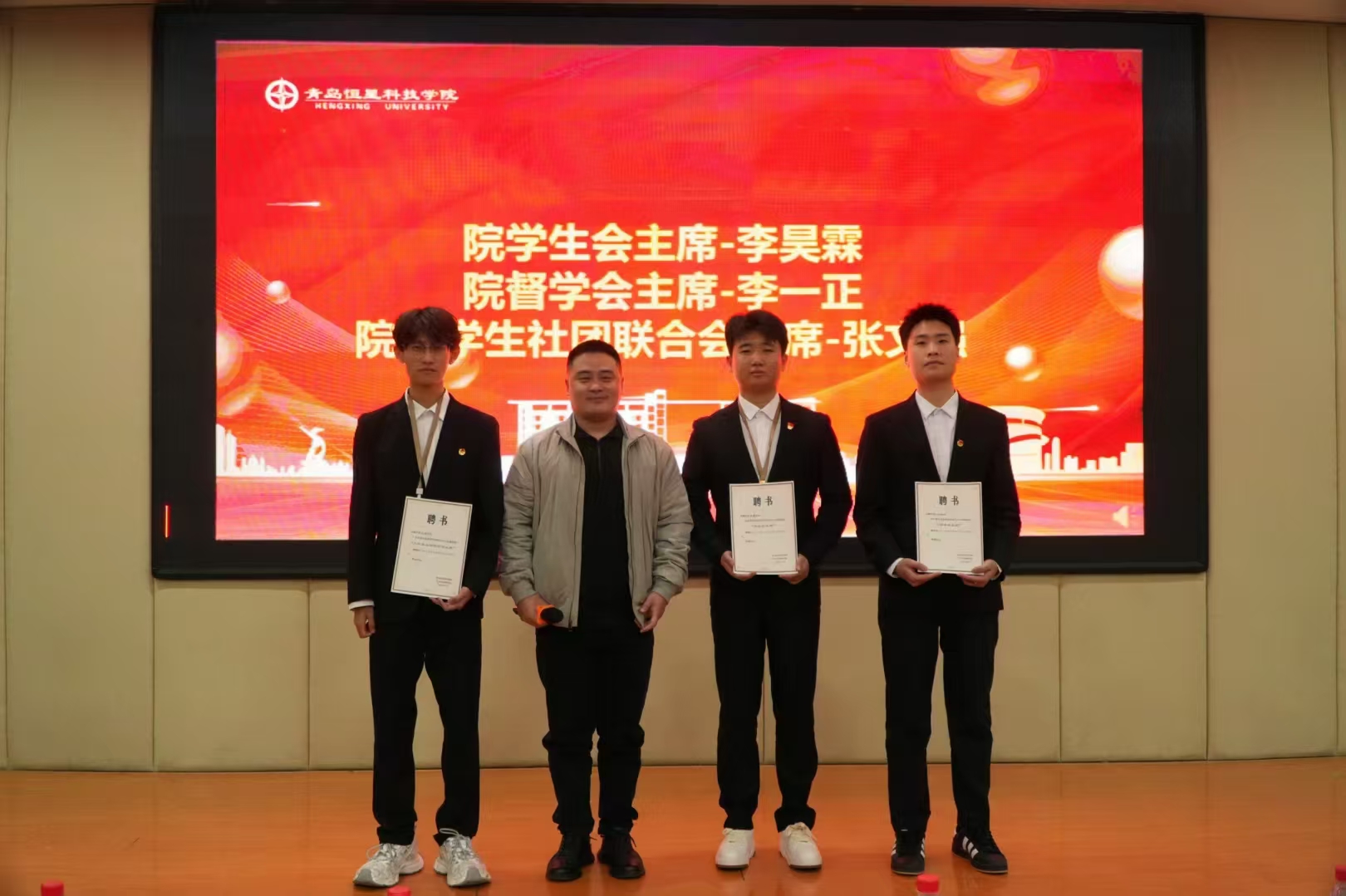 2025 年 11月 17日,青岛恒星科技学院艺术与传媒学院在A8-110隆重举办了学生会2025-2026学年第一次全体大会。此次会议由2025级音乐学本科1班杨适宁同学主持,艺术与传媒学院副书记张宝奎及辅导员老师出席本次大会。
