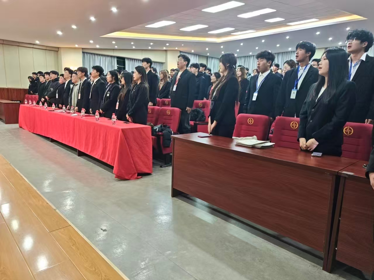 奏唱《中华人民共和国国歌》,在激昂的国歌中,2025-2026学年院学生会第一次全体会议正式拉开序幕。