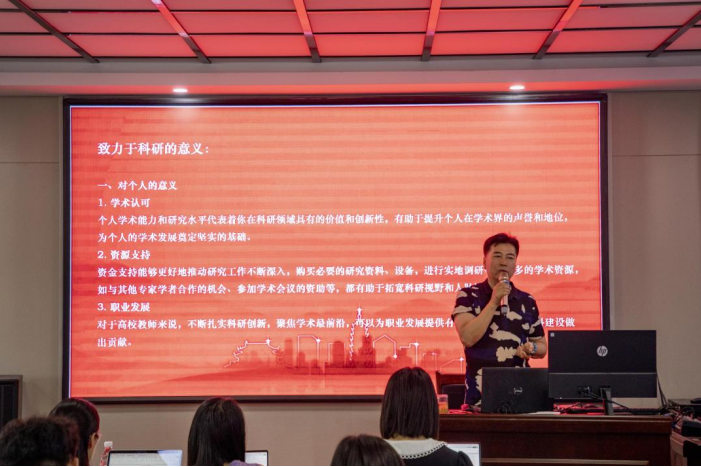 讲座中,张成义教授结合多年课题评审与科研实践经验,从选题申报流程、确定选题研究方向、题目撰写等方面展开深入讲解。他提到,对教师而言,课题申报是提升学术能力、拓展职业发展的重要途径。
