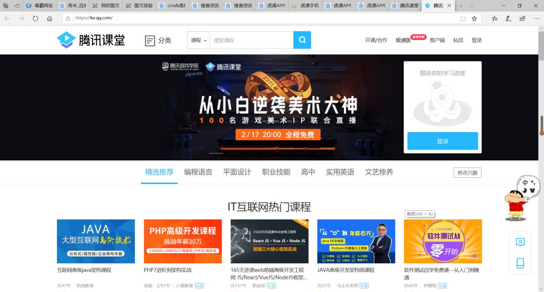 腾讯课堂是腾讯推出的专业在线教育平台,聚合大量优质教育机构和名师,下设职业培训、公务员考试、托福雅思、考证考级、英语口语、中小学教育等众多在线学习精品课程,打造老师在线上课教学、学生及时互动学习的课堂。