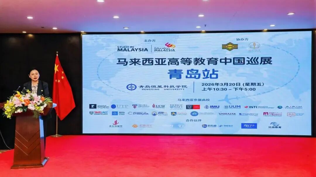 3月20日,由马来西亚教育全球服务中心(EMGS)主办,马来西亚考试理事会(MPM)、马来西亚大学教育联盟中国办公室(MUET)协办,青岛恒星科技学院承办的“2026马来西亚高等教育中国巡展青岛站”在恒星大酒店隆重开幕。这是本次马来西亚高等教育中国巡展的首站活动,马来西亚EMGS多位核心高管、22所马来西亚优质高校的校领导及代表齐聚青岛,共话中马高等教育合作与人才培养,为两地教育双向交流搭建起高效对接的桥梁。