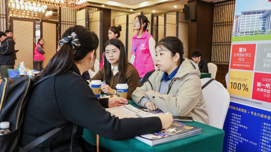 随后,留学咨询展会正式开启。马来西亚国油科技大学、诺丁汉大学马来西亚校区、南安普顿大学马来西亚校区、马来西亚双德科技大学、泰莱大学、吉隆坡科技大学等22所参展高校设立展位,各校代表与现场师生面对面交流,详细解答专业设置、升学申请、学分互认、就业发展等方面的问题,现场咨询氛围热烈。