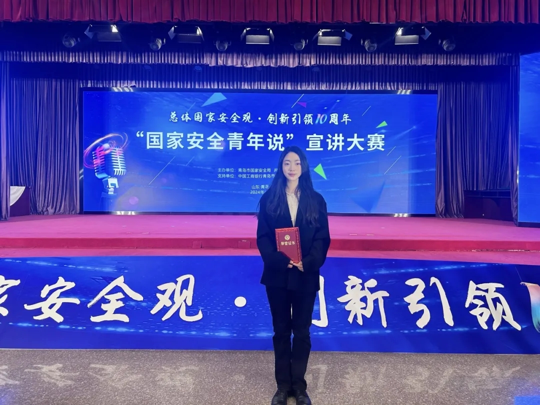 近日,由青岛市国家安全局、共青团青岛市委共同主办的“国家安全青年说”宣讲大赛圆满落幕。艺术与传媒学院教师高晓停凭借其出色的表现,荣获最佳风采奖和优胜奖,为我校争得了荣誉。