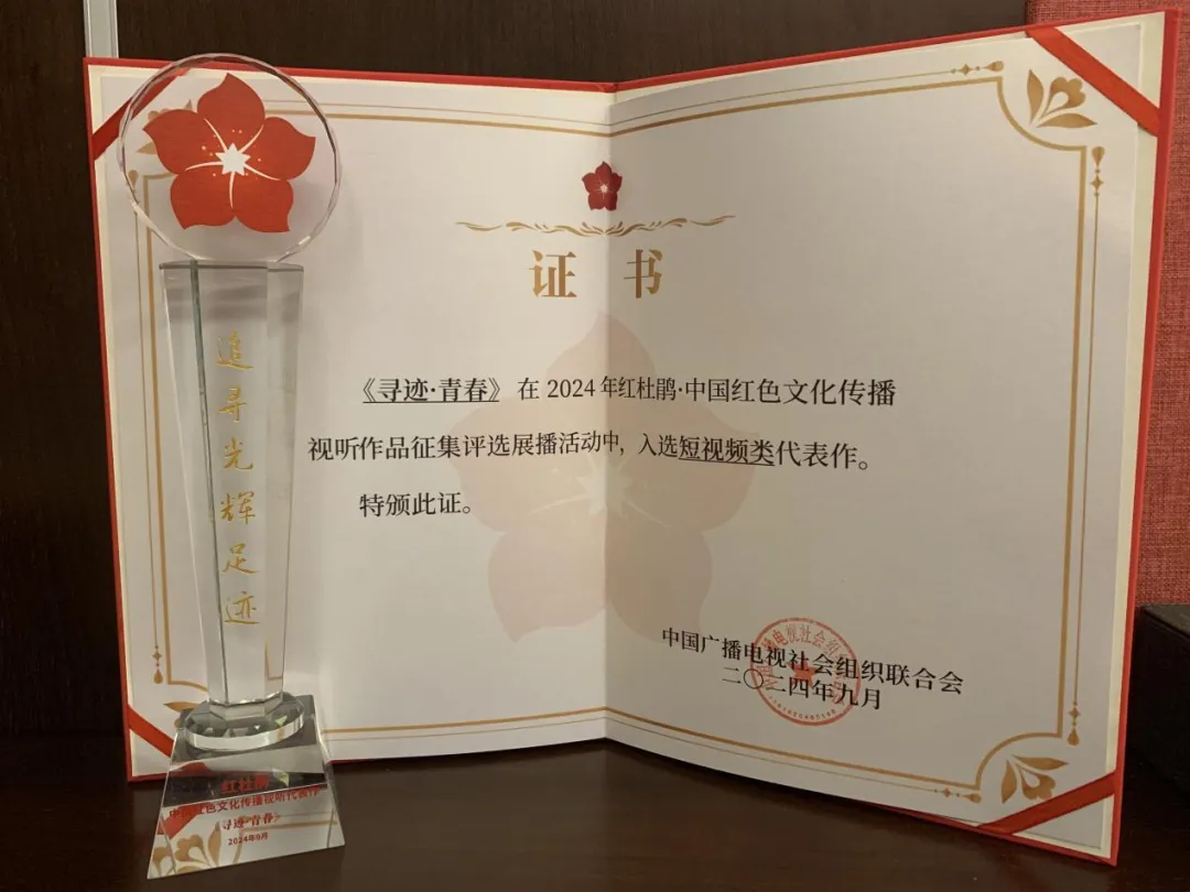 9月20日晚,由中国广播电视社会组织联合会、中共江西省委宣传部、中共吉安市委、吉安市人民政府主办,江西广播电视台(集团)、江西省广电协会承办的“红杜鹃·中国红色文化传播视听代表作发布会”在江西吉安井冈山圆满举行。在此次盛会上,我院2021级影视摄影与制作专业的张子慧、袁秀丽两位同学受邀出席,她们共同创作的影视作品《寻迹·青春》,从中央媒体机构、31个省级行政区广电系统、各级融媒体中心等1446件红色文化传播视听作品中脱颖而出,入选“红杜鹃·中国红色文化传播短视频代表作”。获评代表作将于2024年9月20日起至2025年春节期间,在各省市有线电视、IPTV、各大视频平台开展线上展播活动。