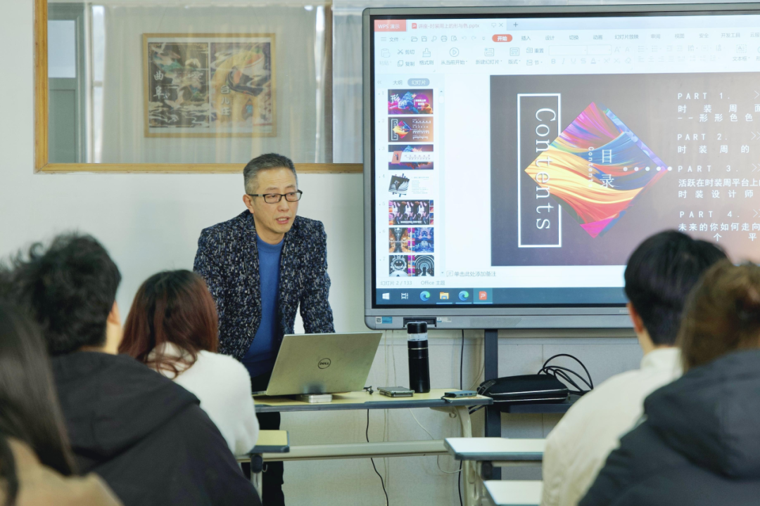讲座伊始,张崇伟先生以丰富的设计经验和深厚的行业积淀深入剖析了当前服装与服饰设计的市场趋势,介绍了现今形形色色的时装周,并为同学们普及了时装周的作品与功能等知识。