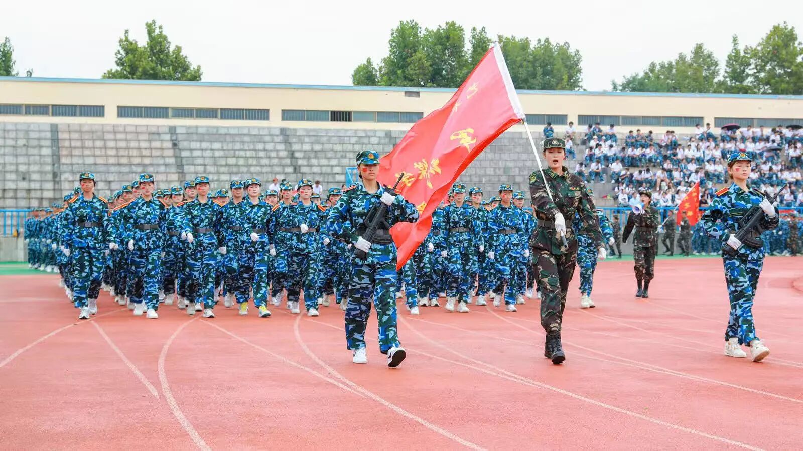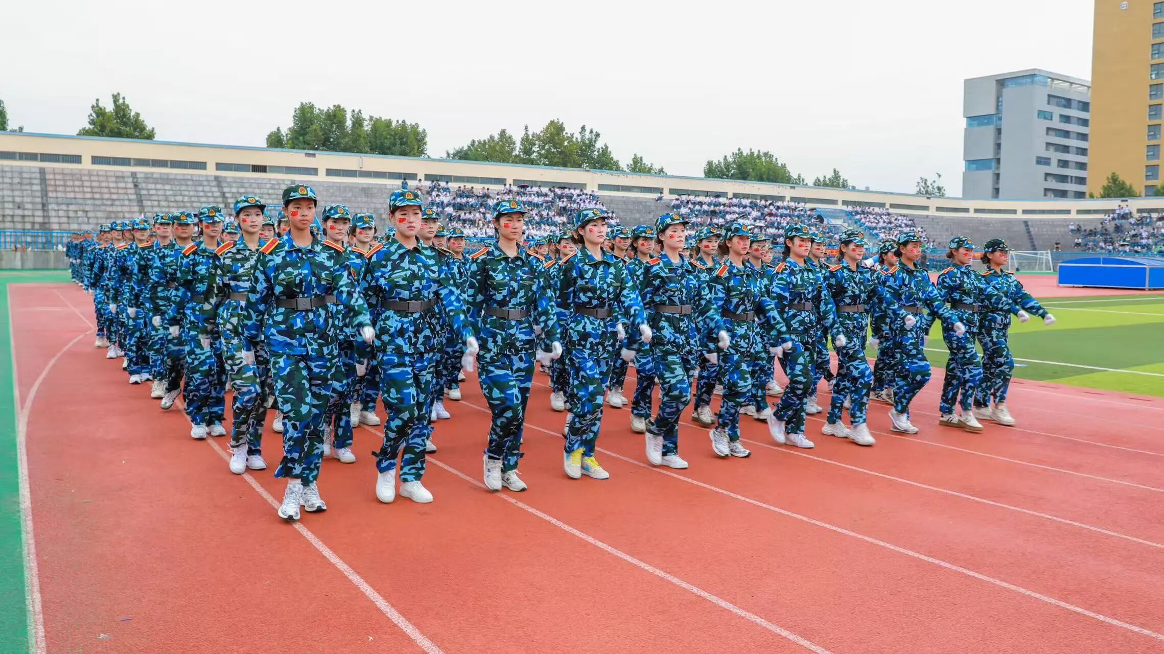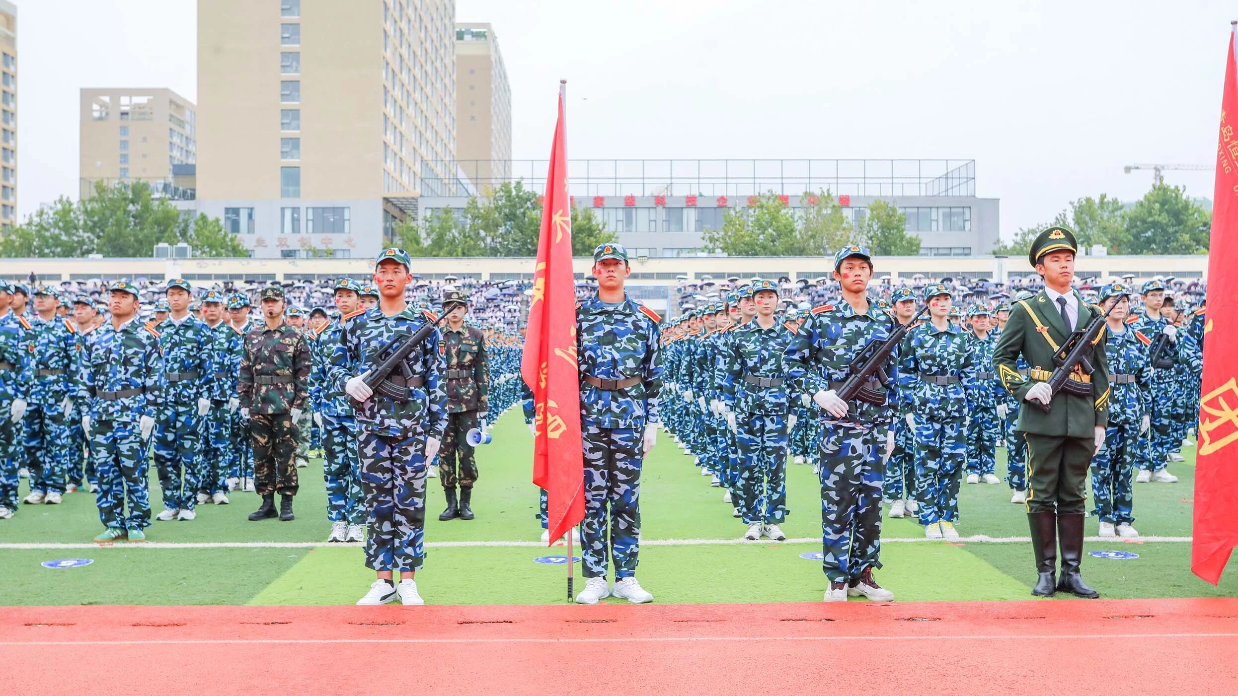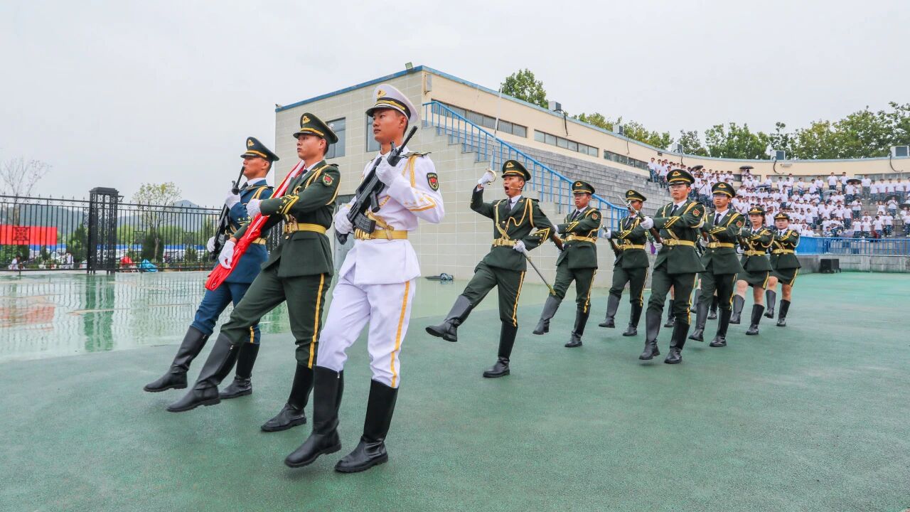 在军训方阵入场环节,我院学子精神抖擞、军姿挺拔、步伐铿锵,以整齐划一的分列式和高标准的队列动作,展现出艺传学子坚韧不拔、团结向上的精神风貌。
