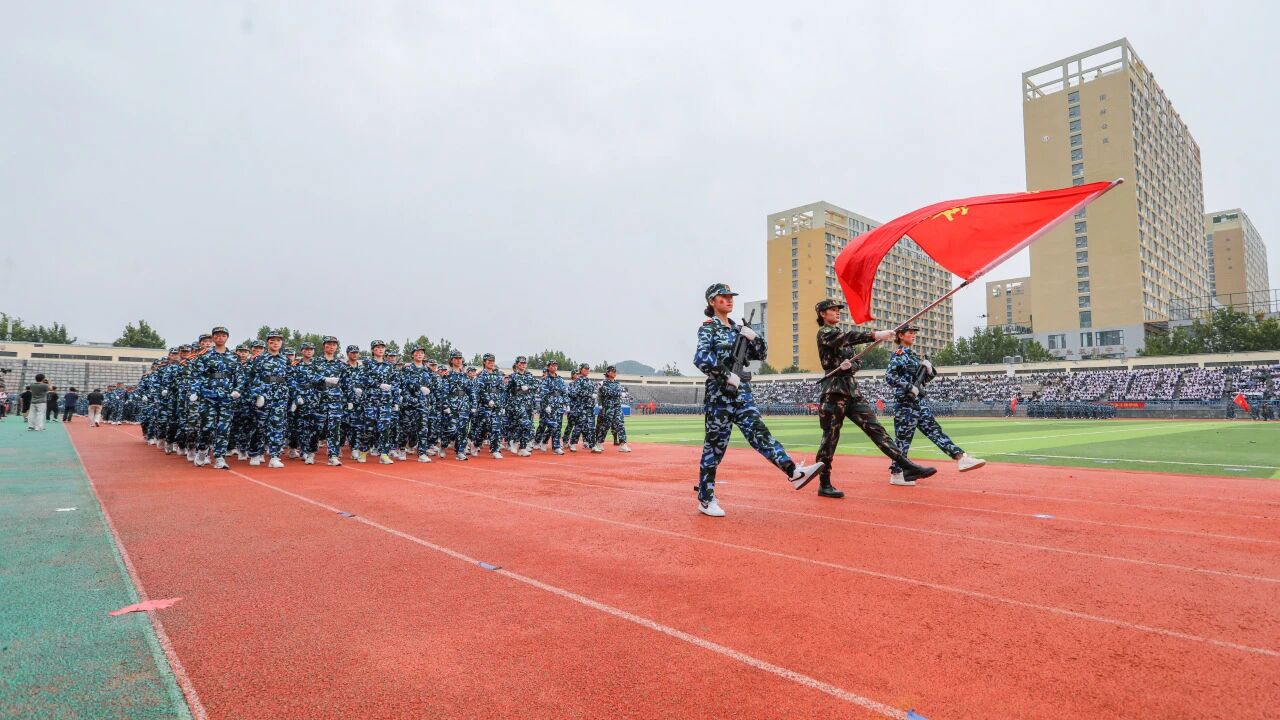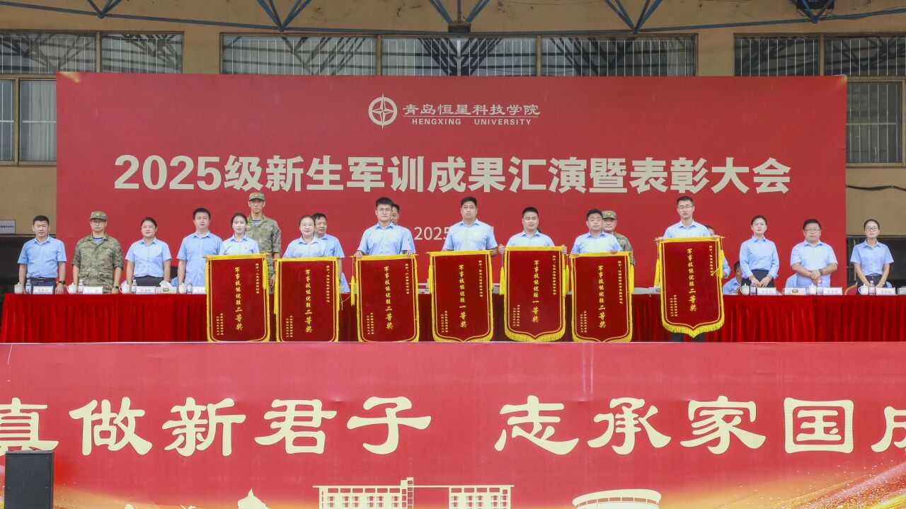 秋雨润泽,青春激昂。9月8日上午,青岛恒星科技学院2025级新生军训成果汇演暨表彰大会在恒星体育场隆重举行。学校领导、教官团、学校专家咨询委员会委员、相关处室负责人、各二级学院院务会成员、新生辅导员老师及2025级全体新生共同参与,检阅军训成果,见证他们经过锤炼后的飒爽英姿与昂扬斗志。