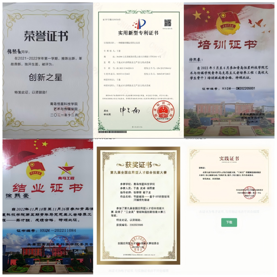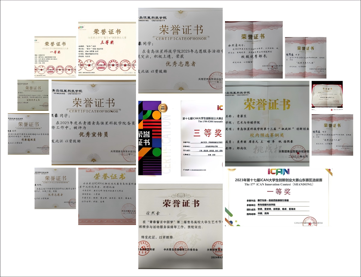 徐熙豪,青岛恒星科技学院艺术与传媒学院2021级印刷工程专业本科生,预备党员。他成绩优异,专业排名前15%,荣获2023-2024学年国家奖学金,并获“山东省高校省级优秀学生”、“山东省技术能手”称号。在校期间,徐熙豪积极参与学术竞赛、科研项目和社会实践,用行动诠释了“专业+坚持=卓越”的青春方程式!