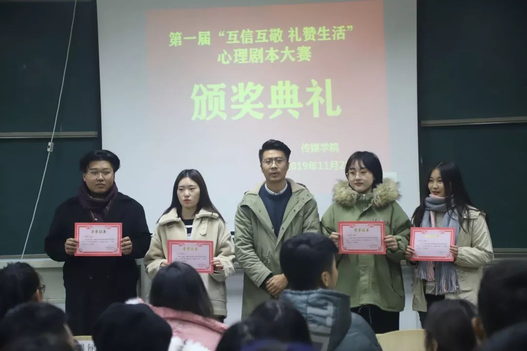 为进一步加强学生心理健康教育工作,增强大学生的心理健康意识,活跃校园文化生活。11月6日至22日,艺术与传媒学院开展了第一届以“互信互敬,礼赞生活“为主题的心理剧剧本大赛。本次比赛为同学们提供了一个探讨与解决心理问题的平台,增进了同学们对心理学和戏剧的认识了解。