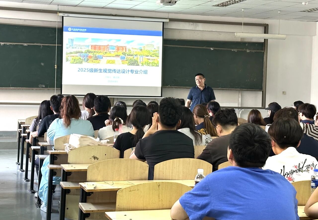 8月26日上午,楼正国教授为2025级视觉传达设计专升本新生作专业介绍。他通过数据实例揭开专业面纱,指出视觉传达相关岗位近五年增长率达18%,“设计师+算法”成热门趋势,强调其涵盖传统平面、数字界面、新兴体验设计三大板块。