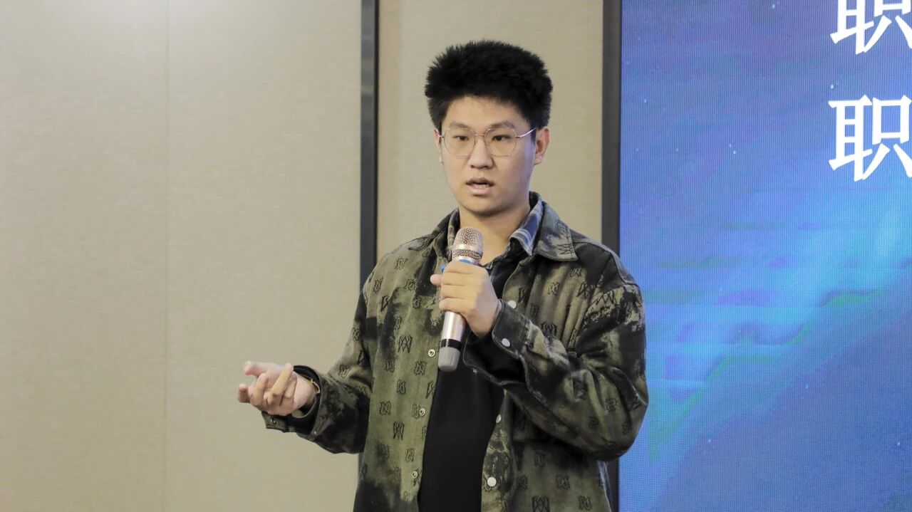 最后,校友甄天硕围绕职业发展路径与择业策略展开分享。他结合自身从校园到职场的转变过程,剖析了如何根据自身优势与行业趋势做出精准选择,并在实践中不断调整与突破。