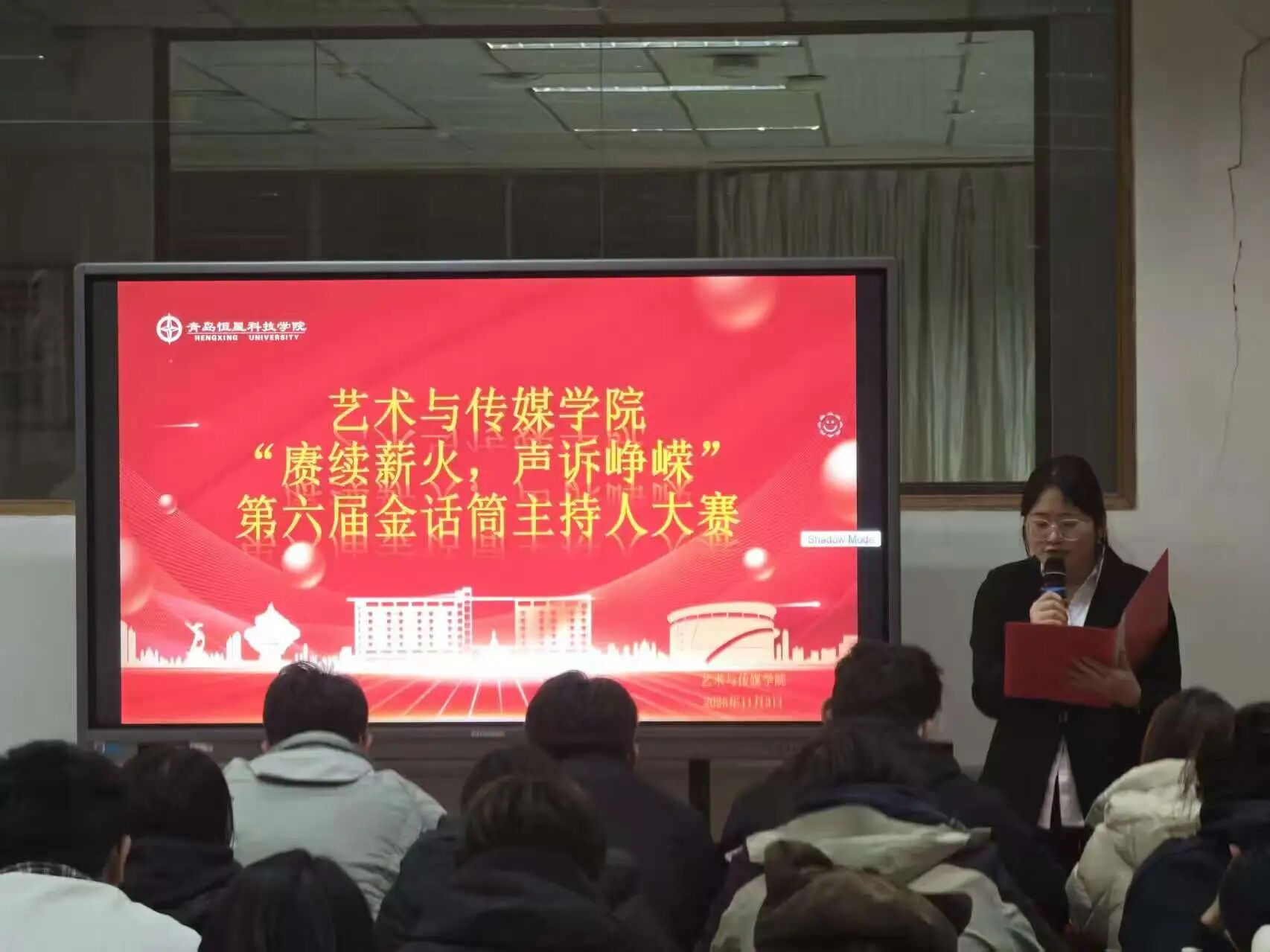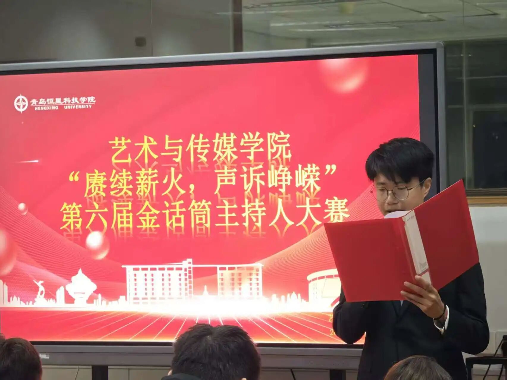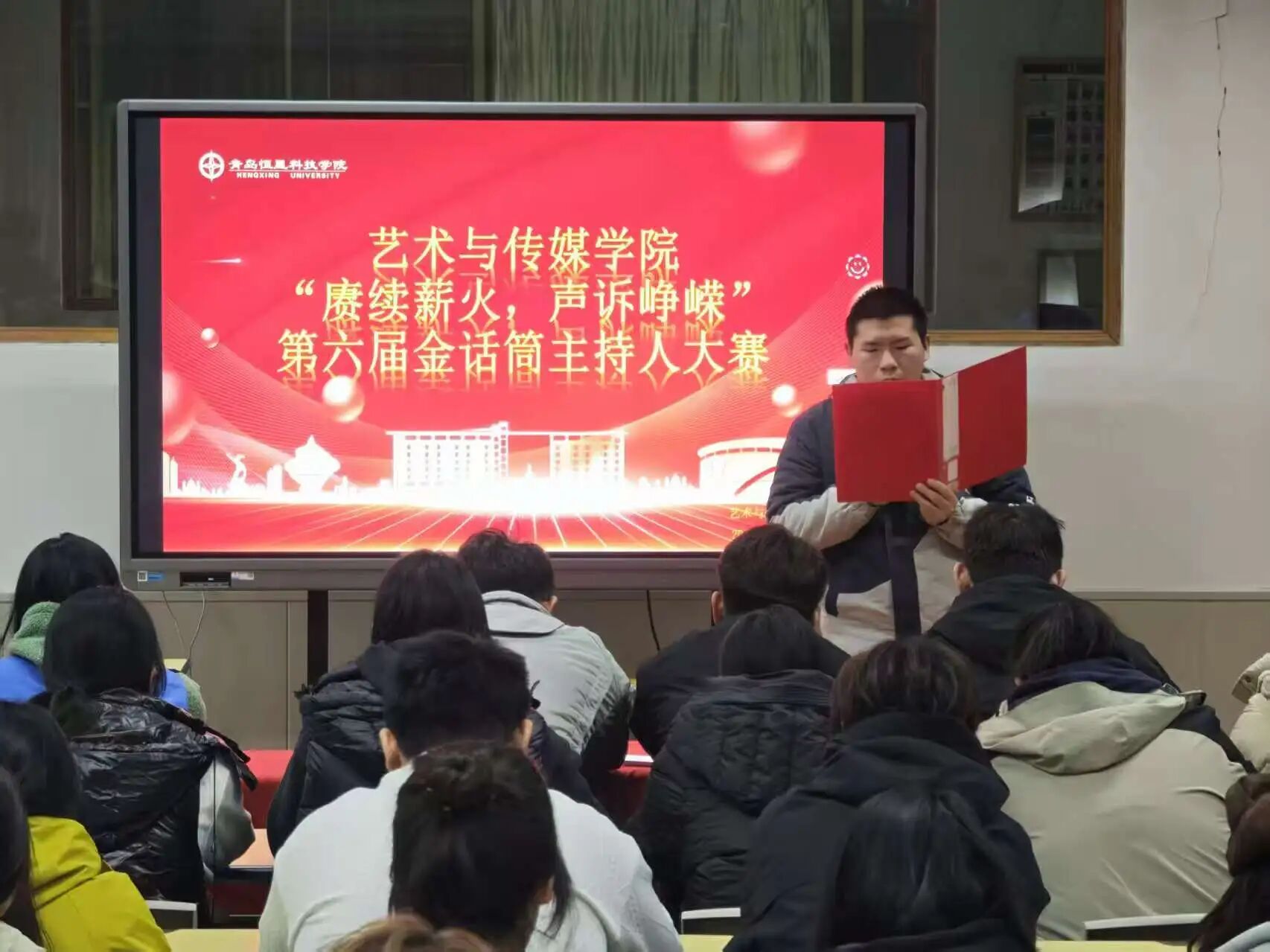 为了深入贯彻党的二十大精神,深化全民讲普通话教育,进一步增强大学生赓续薪火的精神;为了传承红色基因、弘扬时代精神,搭建青年学子展现语言魅力与理想担当的实践平台。艺术与传媒学院于2025年11月3日19:00在A3-206举办“赓续薪火,声诉峥嵘”第六届金话筒主持人大赛。