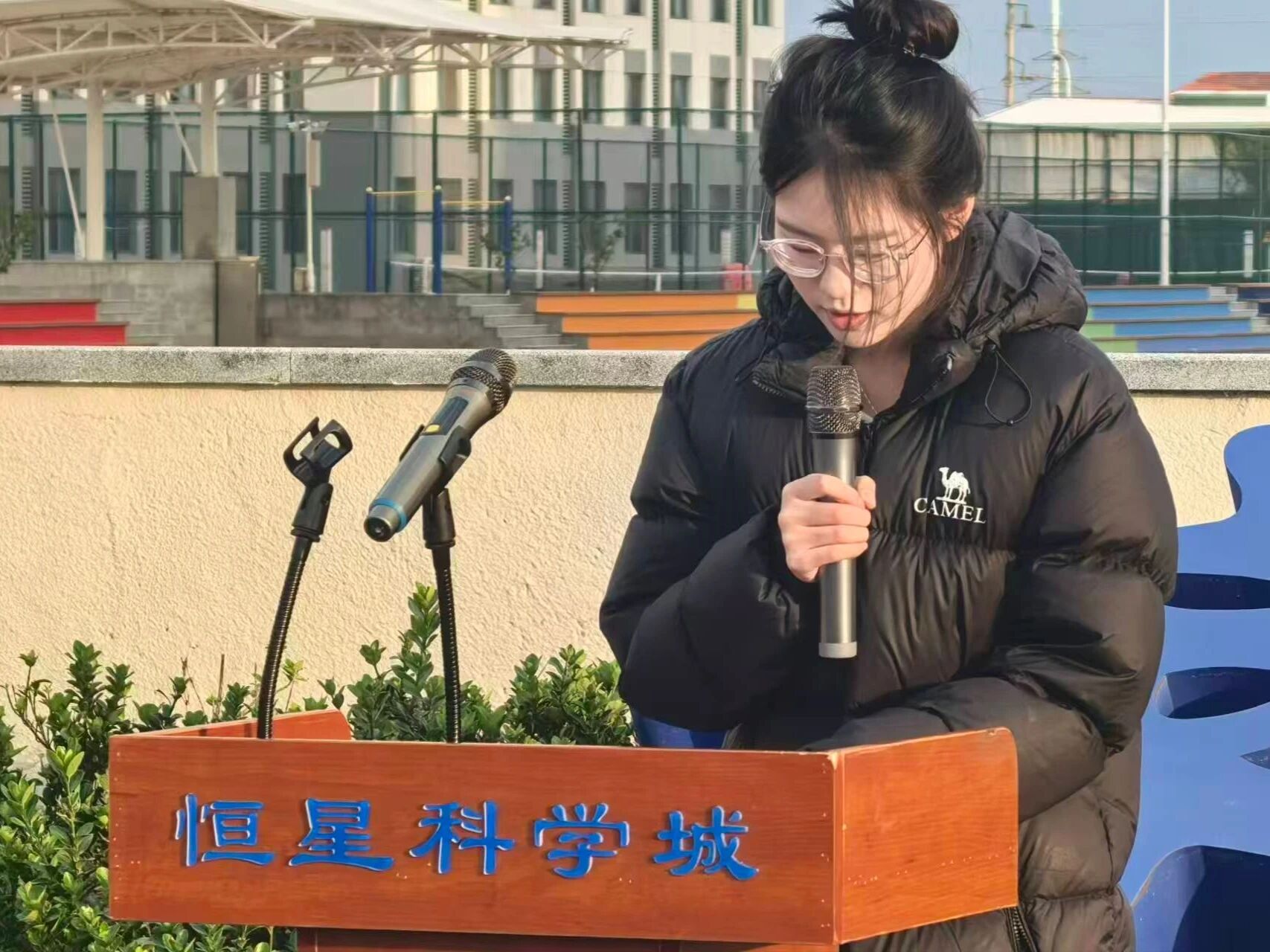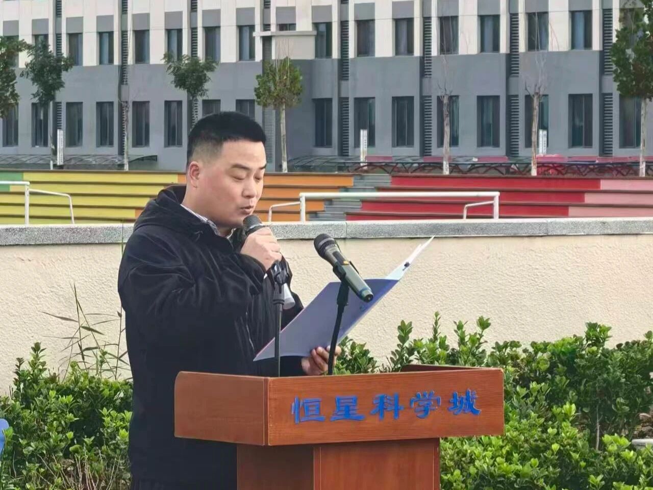 主持人凌桂伟介绍出席今天升旗仪式的领导和嘉宾,他们是恒星科学城各领导,以及艺术与传媒学院全体师生。