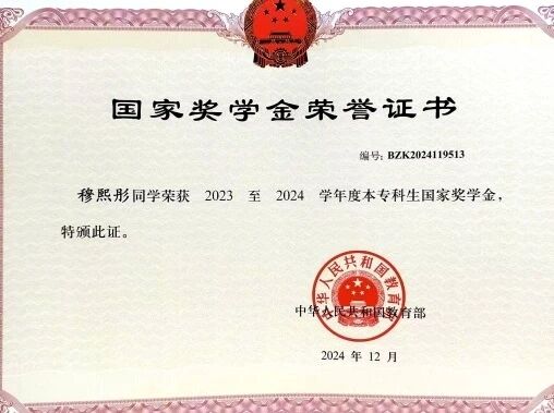 穆熙彤担任班长,积极组织班级和学院的各项活动,与同学友好相处,被评为“优秀学生干部”、“校级优秀干事”等荣誉称号。同时带领班级积极向上,所带班级在2024至2025年度中团结协作,表现优异被评为“先进班集体”荣誉称号。
