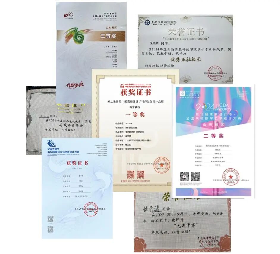 “平均成绩85.5,绩点3.5/4.0,综合排名专业第六”从"米兰设计周中国高校设计学科竞赛山东赛区一等奖"到"全国大学生广告艺术大赛山东省三等奖",从"未来设计师全国高校数字艺术设计大赛山东赛区二等奖"到"全国大学生海洋文化创意设计大赛佳作奖",五项省级以上设计大奖见证着她对视觉语言的深度解构。