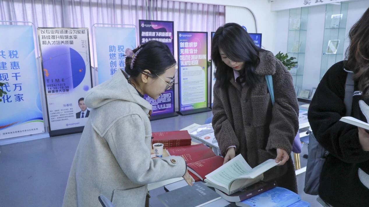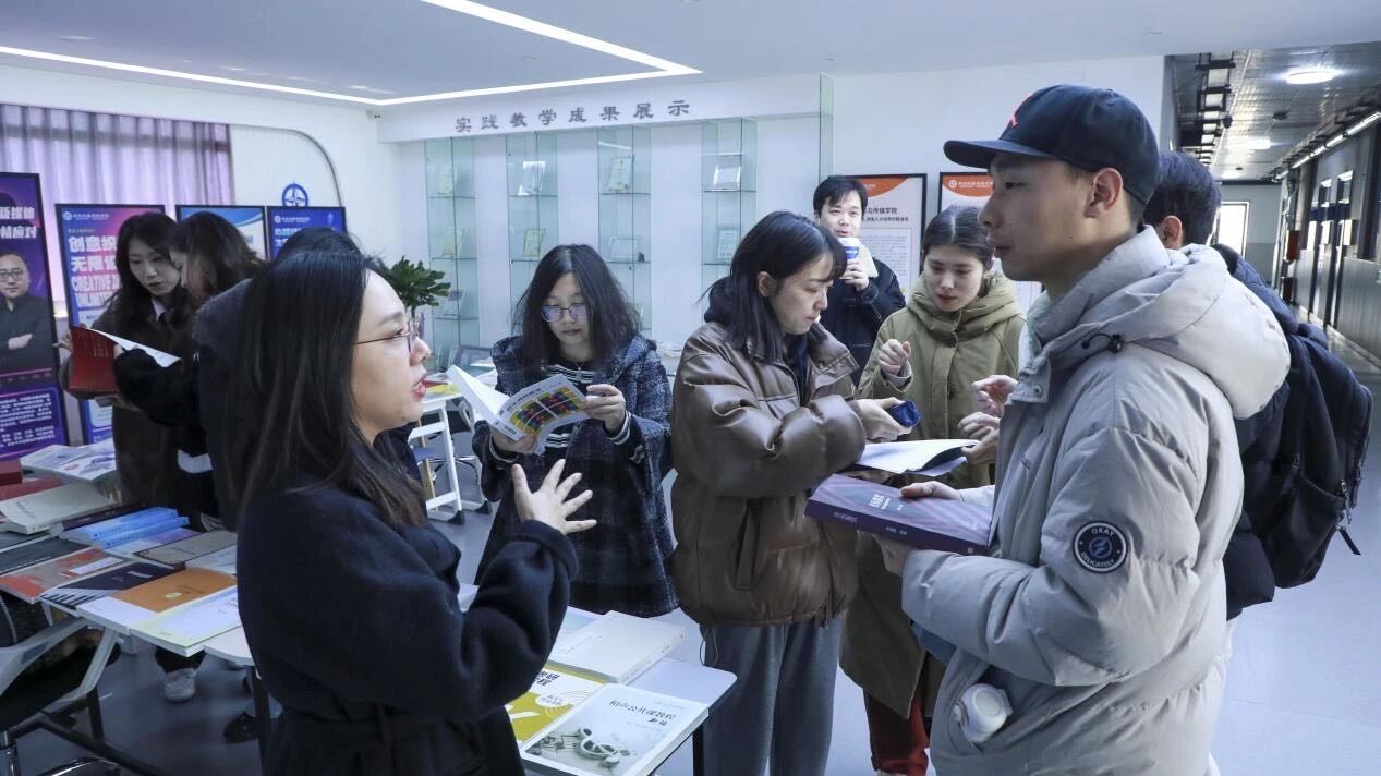 此外,讲座现场还特别设置了教材交流专区,陈列了涵盖音乐基础与作曲技术、影视制作、设计艺术、舞蹈学、电影史等相关领域的精选教材。来自高等教育出版社的编辑现场答疑,教师们纷纷驻足,翻阅书籍,交流心得,对教材的编写理念、内容结构以及使用心得进行了深入探讨。
