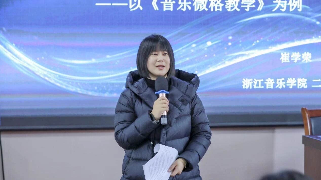 为积极适应教育技术快速发展的趋势,探索课程建设与科技融合的新路径,推动艺术与学院教师队伍的专业发展与课程建设创新,我院举办了“数字化赋能教师发展”系列讲座。其中,3月6日,我院荣幸邀请到浙江音乐学院教授、硕士生导师、音乐教育学方向学科带头人崔学荣,在实验楼融媒体大讲堂举办了一场主题为“AI 数智技术赋能智慧课程建设”的精彩讲座,本次讲座由我院科研院长梁延芳担任主持人,吸引了众多教师积极参与。
