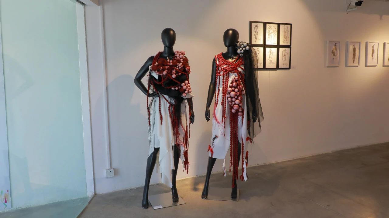 在展览中,我院服装与服饰设计专业的师生们精心设计的,13套立体造型设计作品、28套时装设计作品、26件时尚画、14套服饰品图案设计,亮相“独立展·前置的日常——布料设计的艺术”专场,通过这些作品展现了他们的艺术创意与材料运用。我院服装与服饰设计专业带头人台法教授作为策展人,全程参与了布展工作,为此筹备了一个月之久。