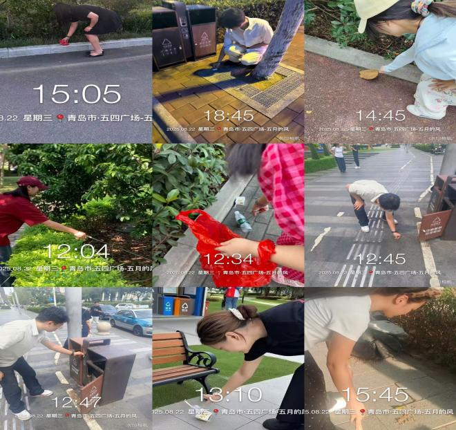 参观后,同学们用自己的行动贡献自己的一份力量,团队成员在五四广场大道附近草丛边附近维护环境,并进行垃圾分类,在此次活动中收获颇多。