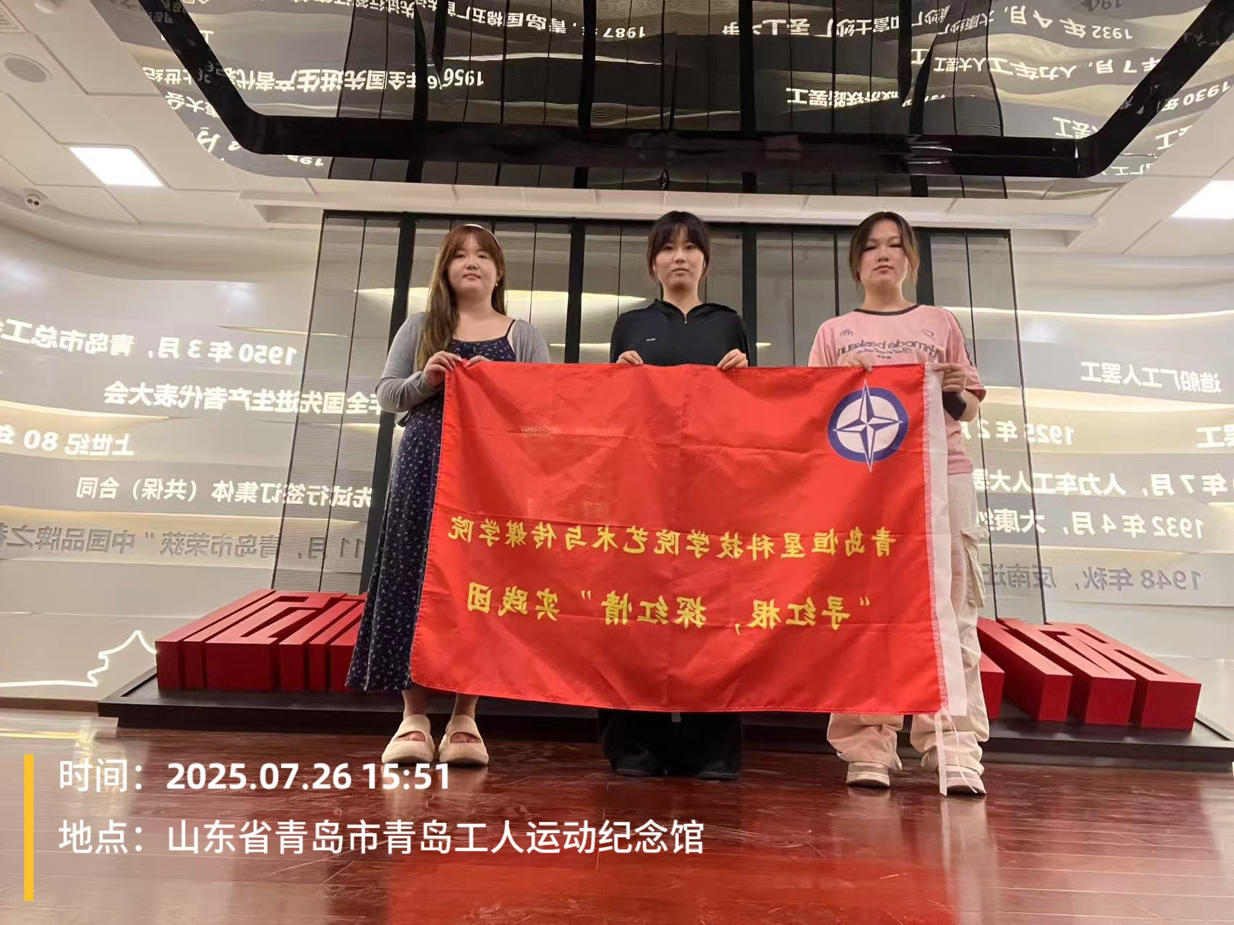 随着暑期"三下乡"社会实践的展开,2025年7月25日,青岛恒星科技学院艺术与传媒学院“寻红根,探红情”实践团成员们整装待发,满怀激情的前往工人文化运动纪念馆,开启一场意义非凡的红色探寻之旅。