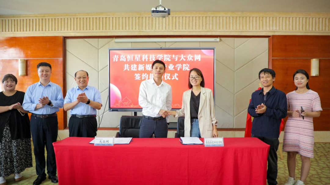 出席本次活动的有大众网海报新闻客户端副总经理、大众网青岛站站长、大众网青岛分公司负责人周传金,大众网青岛站运营总监李志,大众网青岛站教育事业部主任李敏以及大众网青岛站教育事业部高教工作室主任张玉等。我校方面,青岛恒星集团主席、青岛恒星科技学院董事长陈昌金博士,学校党委副书记、副校长、宣传部部长王立庭,集团运营总监、传媒集团执行总裁、艺术与传媒学院执行院长唐甜甜,传媒集团副总裁侯鹏超等领导也出席了仪式。