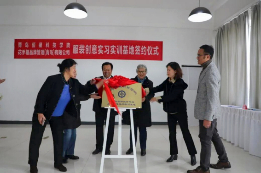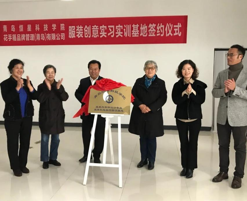 签约仪式上还举行了“青岛恒星科技学院艺术与传媒学院与花手箱品牌管理(青岛)有限公司共建服装创意实习实训基地”揭牌仪式,标志着双方合作的首个项目正式落地。
